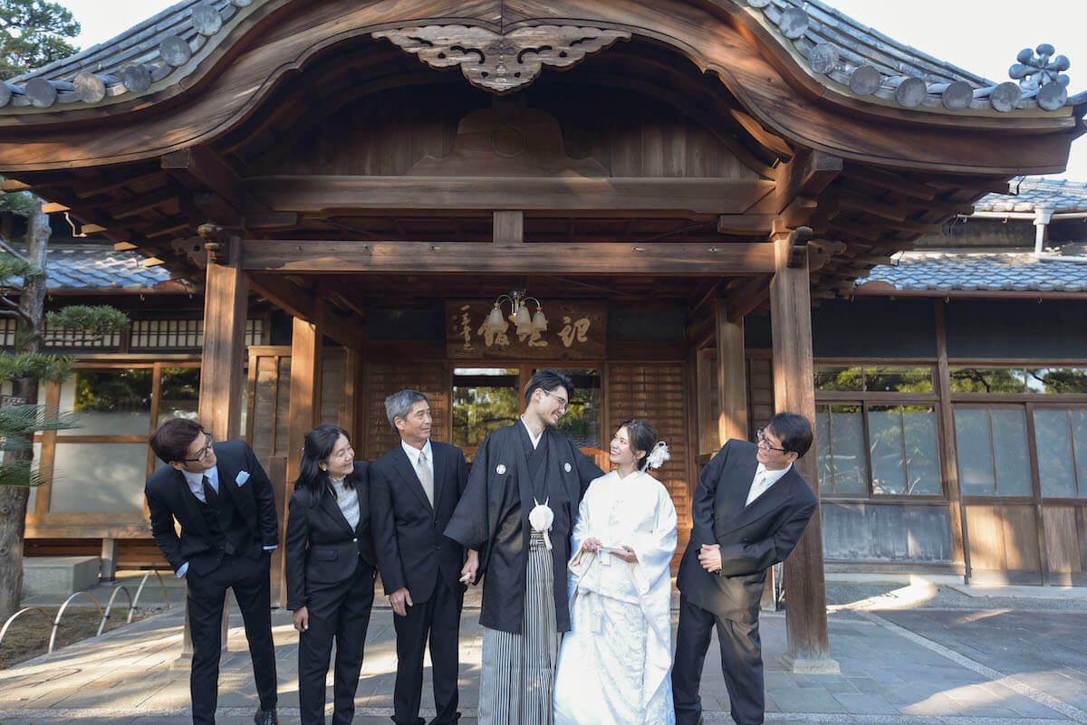 家族の絆と笑顔を写すファミリーウェディングフォト。新郎新婦おふたりの想い出と一緒に家族で撮影を行います。