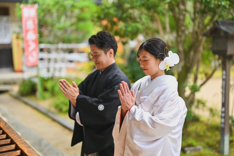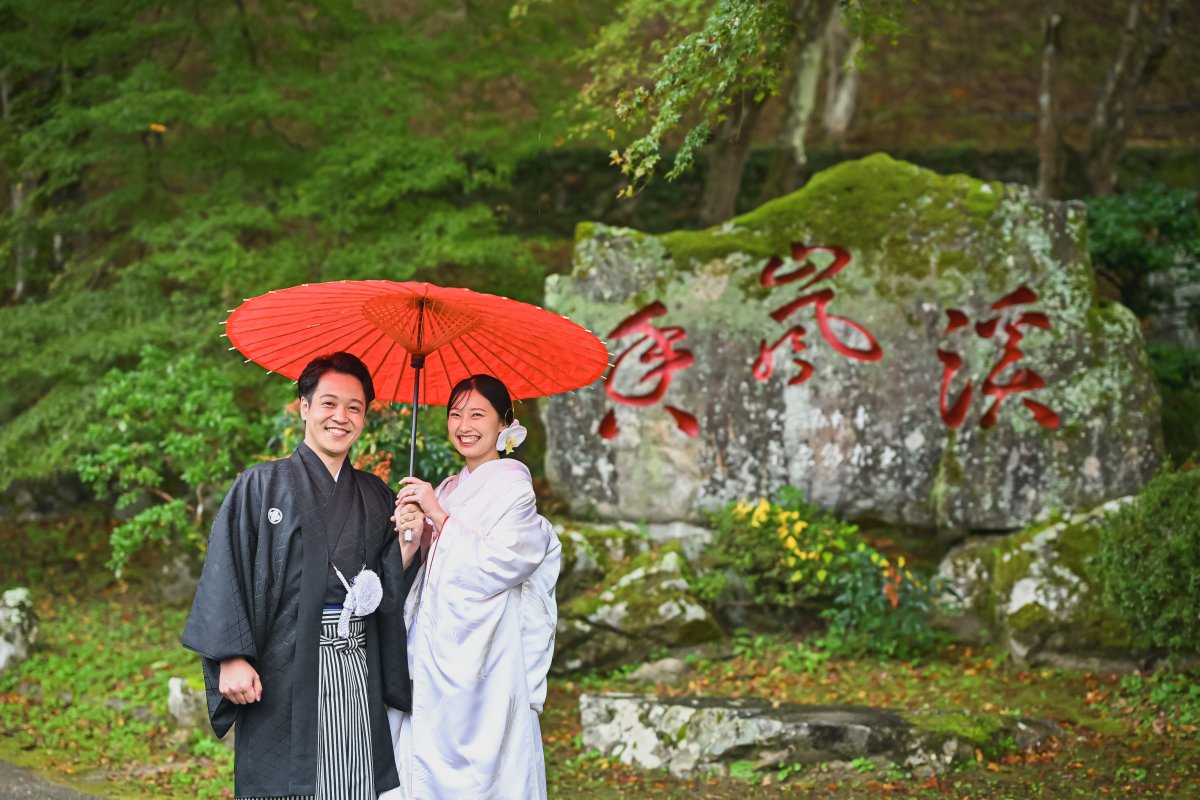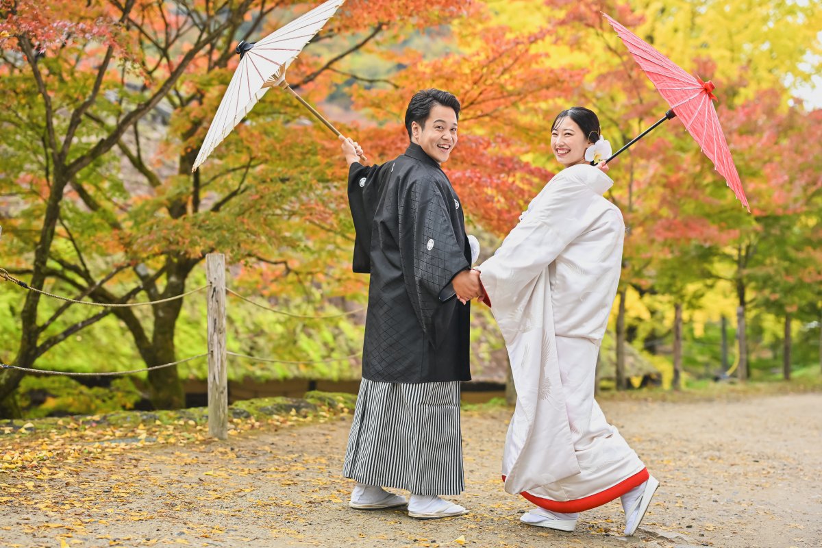 紅葉に包まれた境内は、色鮮やかな木々とやわらかな光に包まれ、歩くだけでも心が穏やかになる空間です。そんな中で迎える”はじまり”の瞬間は、ただの写真や記録にとどまらず、心に深く刻まれる特別な思い出になるでしょう。香積寺の静けさと自然の美しさが重なり合う瞬間は、お二人の新しい門出をやさしく見守ってくれる、そんな場所です。