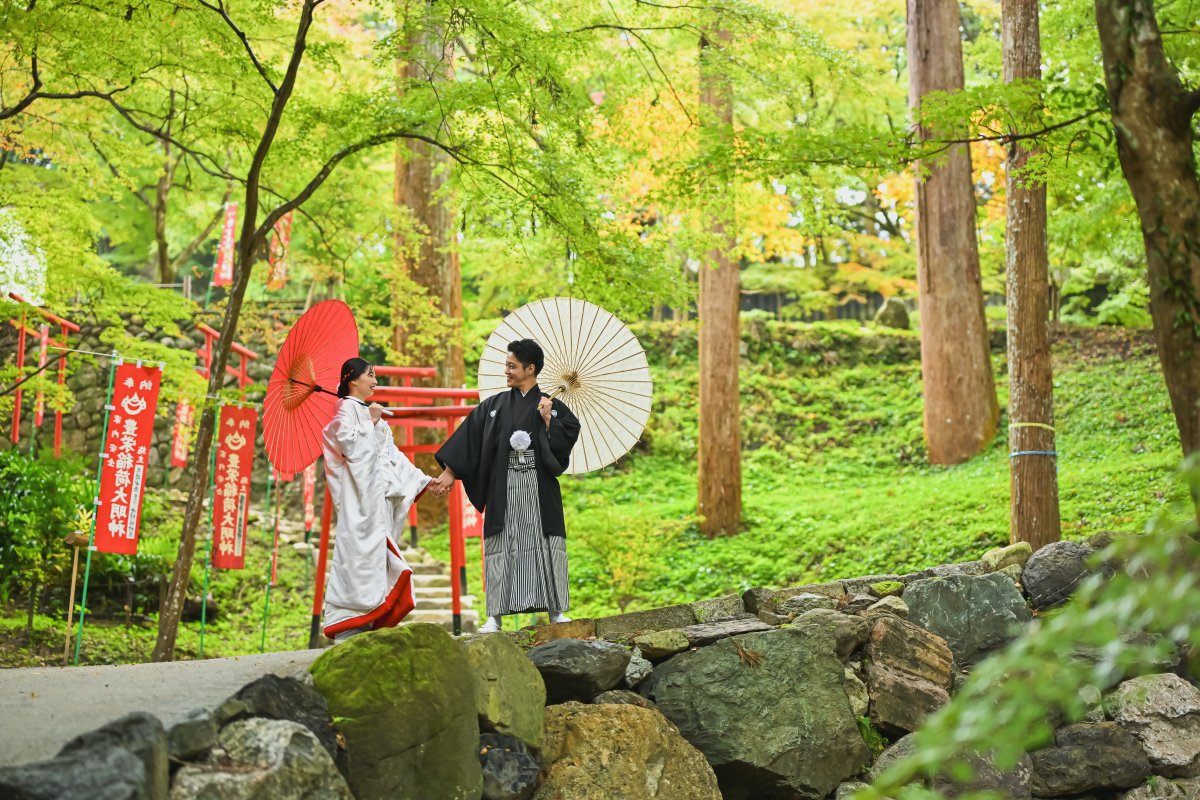 紅葉に包まれた境内で迎えるその瞬間は、きっと心に残る特別な思い出になります。写真を見返すたびに、あのときの静けさややわらかな光、そして空気のぬくもりまで思い出せる——そんな穏やかな時間がここには流れています。
