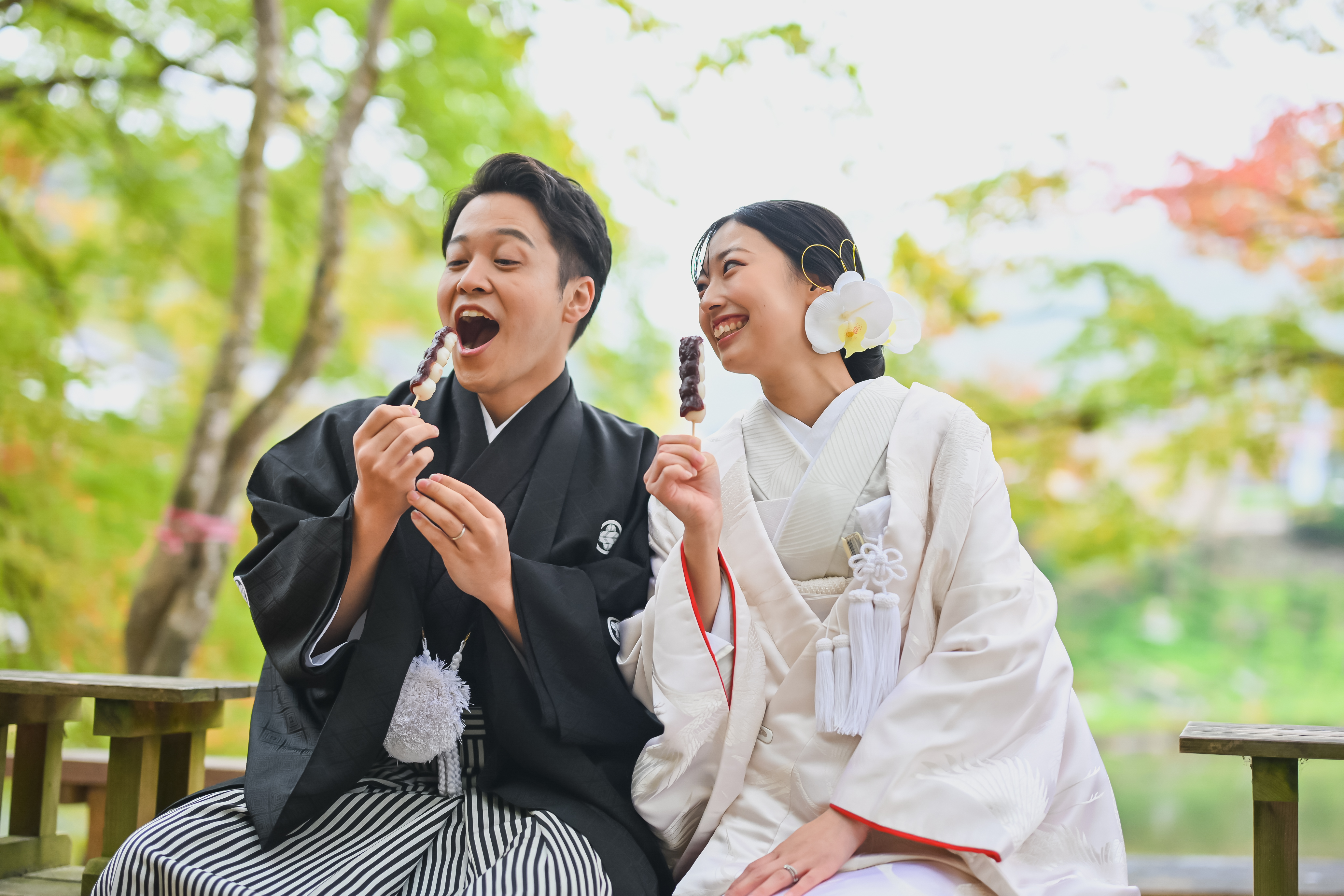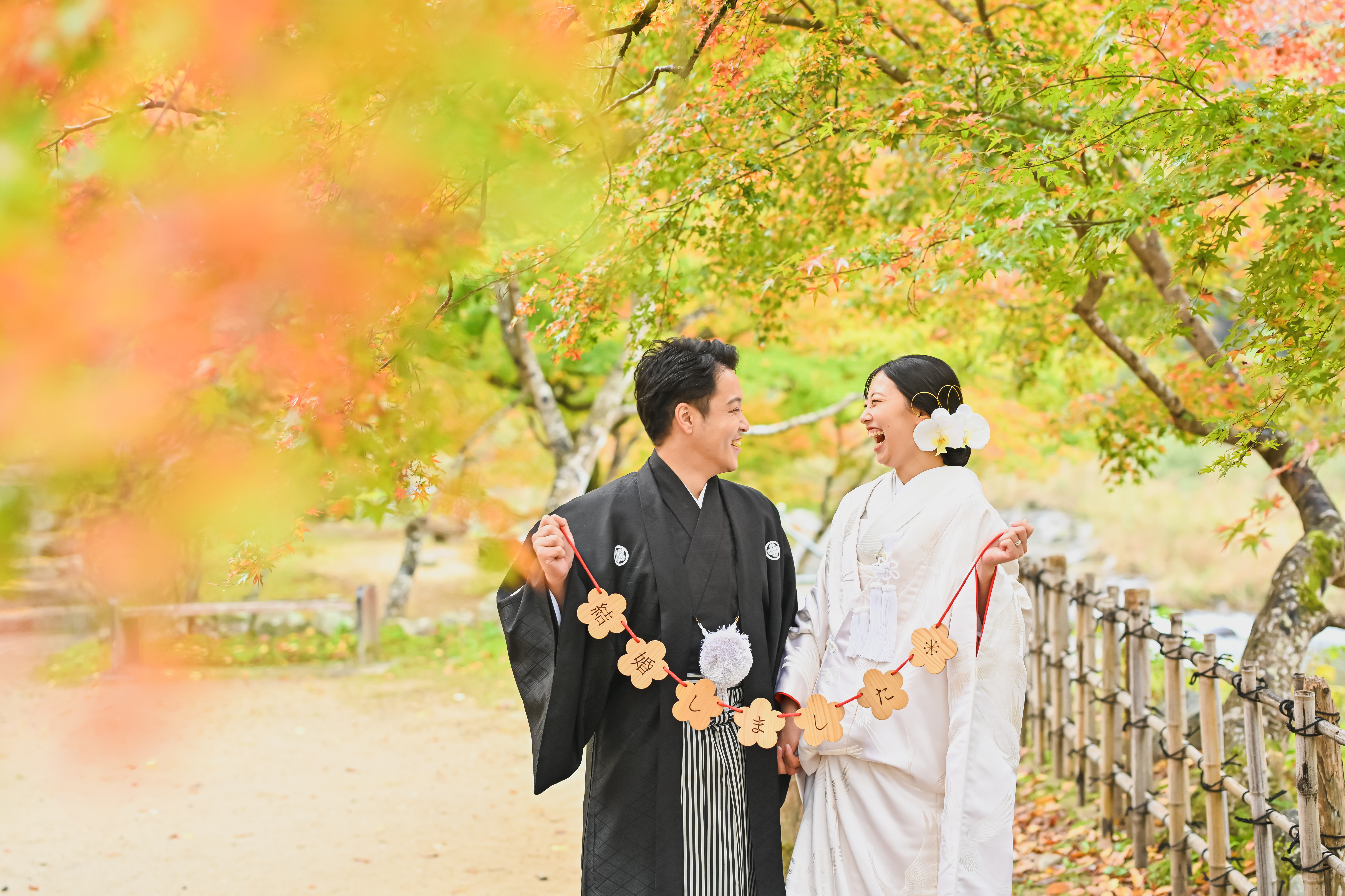紅葉に包まれた境内は、色鮮やかな木々とやわらかな光に包まれ、歩くだけでも心が穏やかになる空間です。そんな中で迎える”はじまり”の瞬間は、ただの写真や記録にとどまらず、心に深く刻まれる特別な思い出になるでしょう。香積寺の静けさと自然の美しさが重なり合う瞬間は、お二人の新しい門出をやさしく見守ってくれる、そんな場所です。