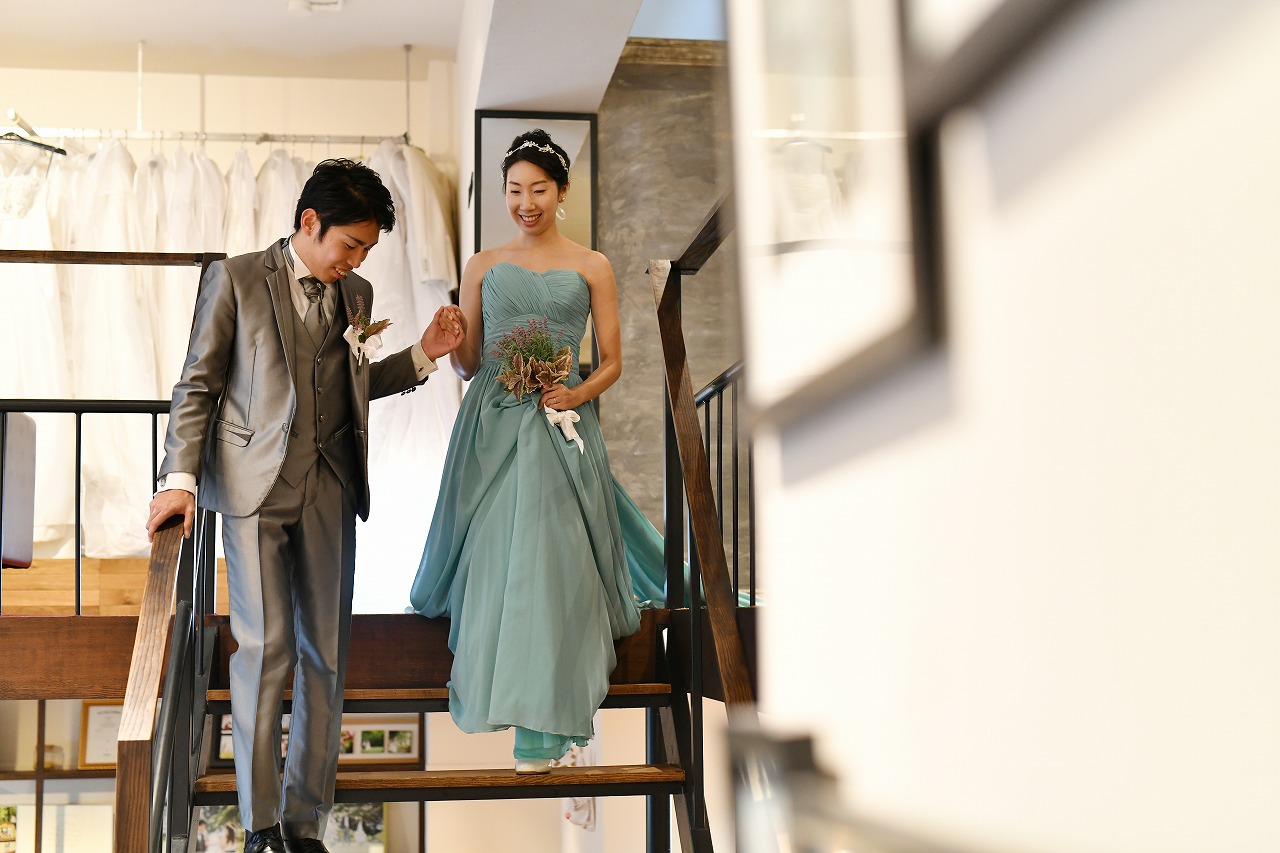 また新婦様のお選び頂いたターコイズブルーのカラードレスもナチュラルに、エレガントに着こなしで新郎様もうっとり♡