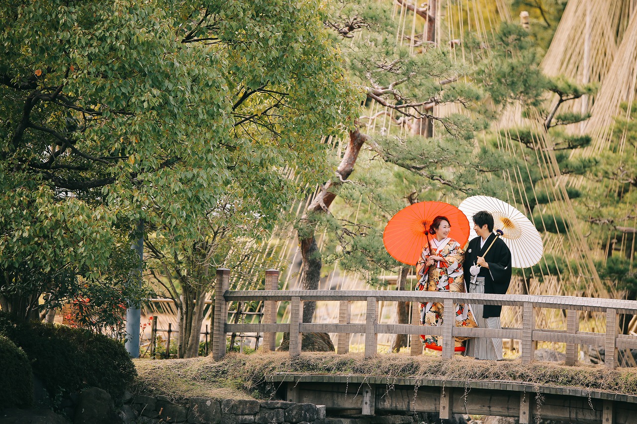 「絆の鐘」を鳴らしながらのショットや広大な海と空をバックの撮影もとても楽しんでいただけて良かったです!!ただ、野間灯台が撮影出来なかったのは本当に残念です(;_;)/和装は白鳥庭園でしっとりとした撮影に。