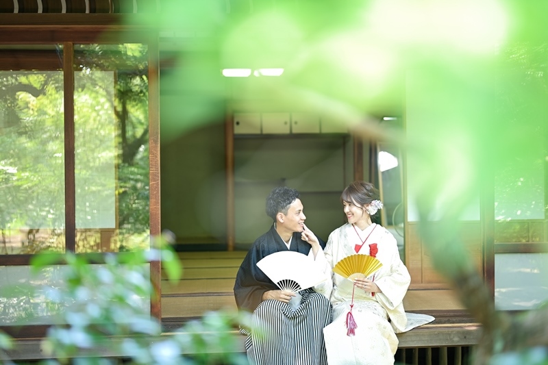 お衣装の白無垢もとっても似合っていて可愛いですし、ご新郎様の黒の紋付と相性ばっちりですね!!
