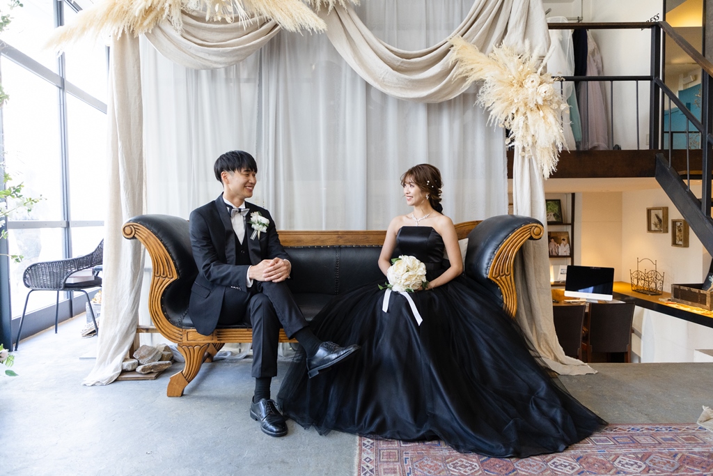 オシャレで、大人なブラック衣装で合わせてアンティークなアトリエスタジオ撮影♡