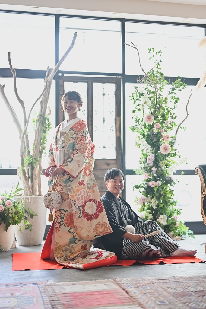 やさしい光が差し込むアトリエスタジオで色鮮やかな色打掛とオシャレに撮影☆