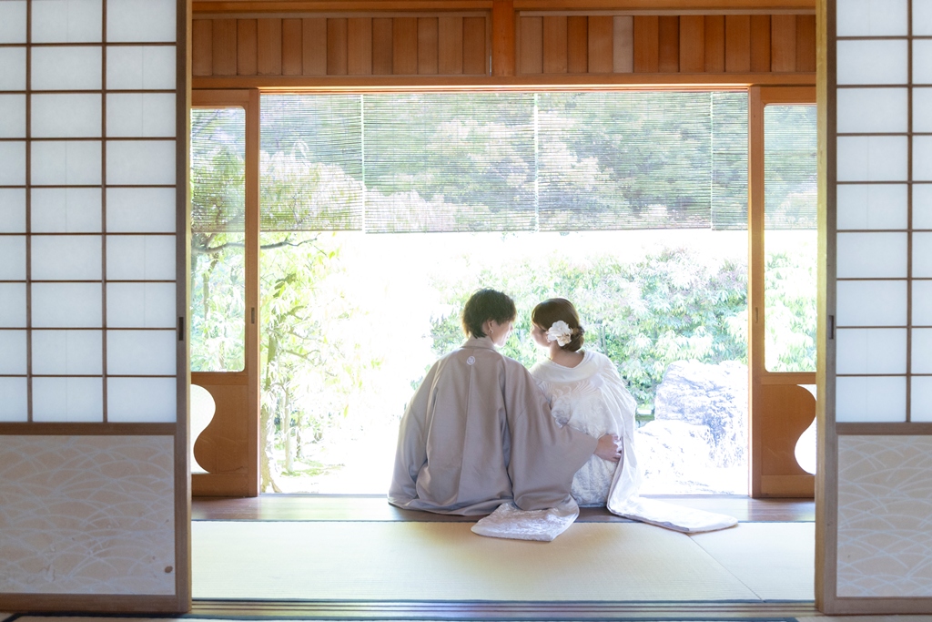 キラキラしたロケーションでお二人の笑顔も輝いていて、本当に素敵でした(*’▽’)お茶室や渡り廊下、四阿でも色々と撮影を楽しんでいただけて何よりです♪