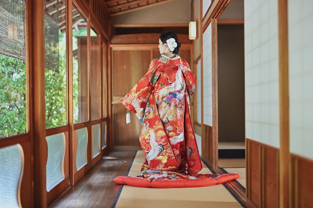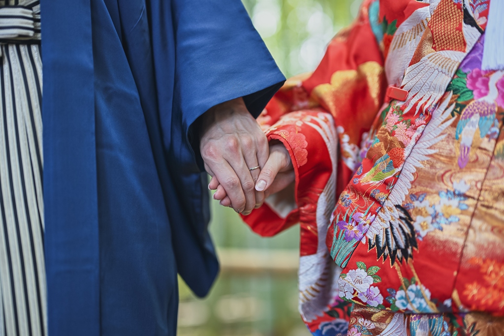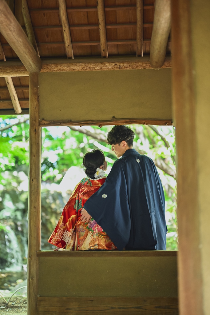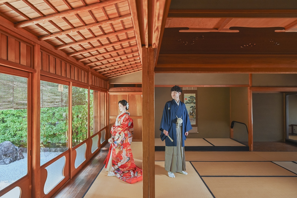その凛とした空気感の中に、和装姿のおふたりが立たれると、まるで映画のワンシーンのような世界が広がっていました。