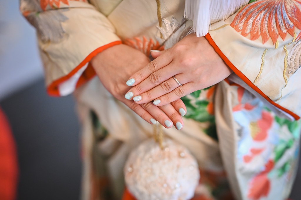 おふたりの大切な一日にご一緒できましたこと、心より嬉しく思っております。まずは和装での撮影では、柔らかな光に包まれた静かな空間の中で、白無垢や色打掛の質感が美しく引き立っておりました。