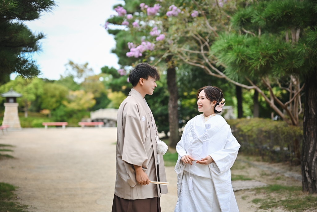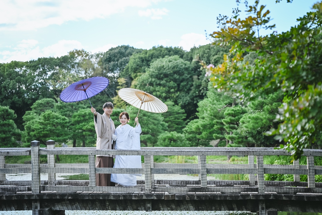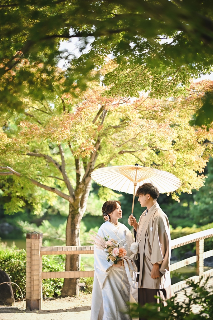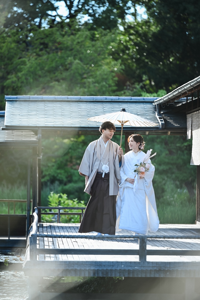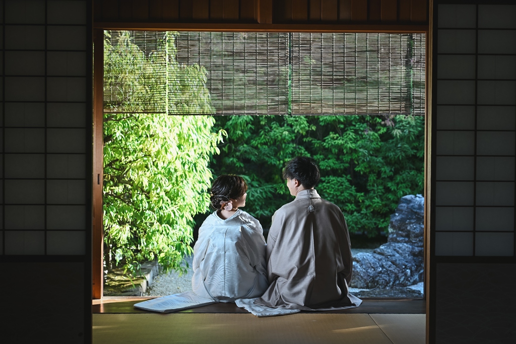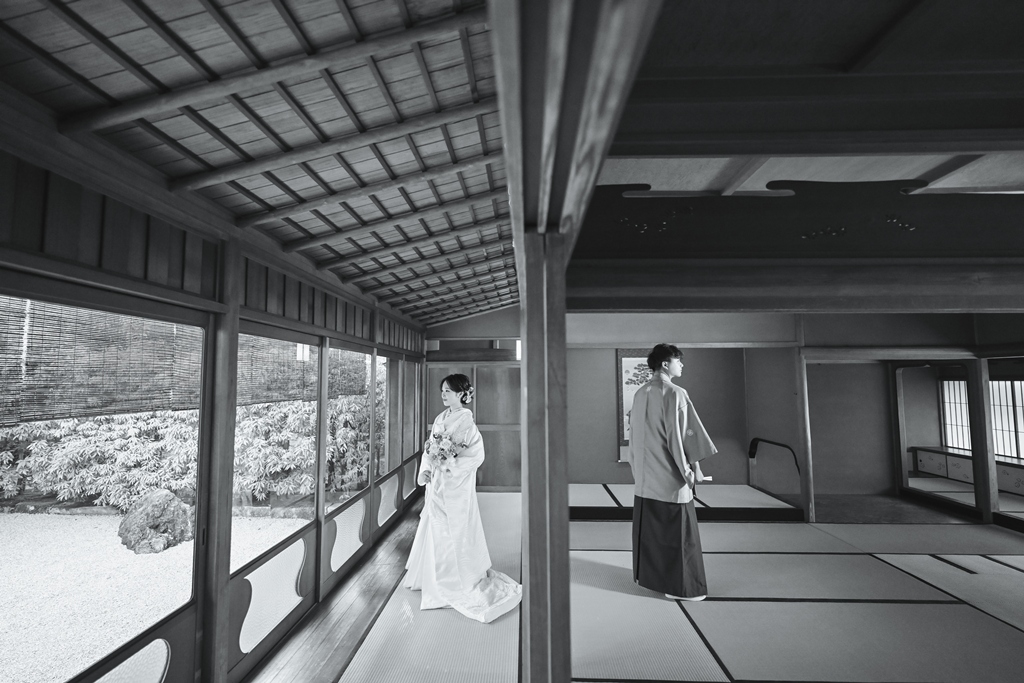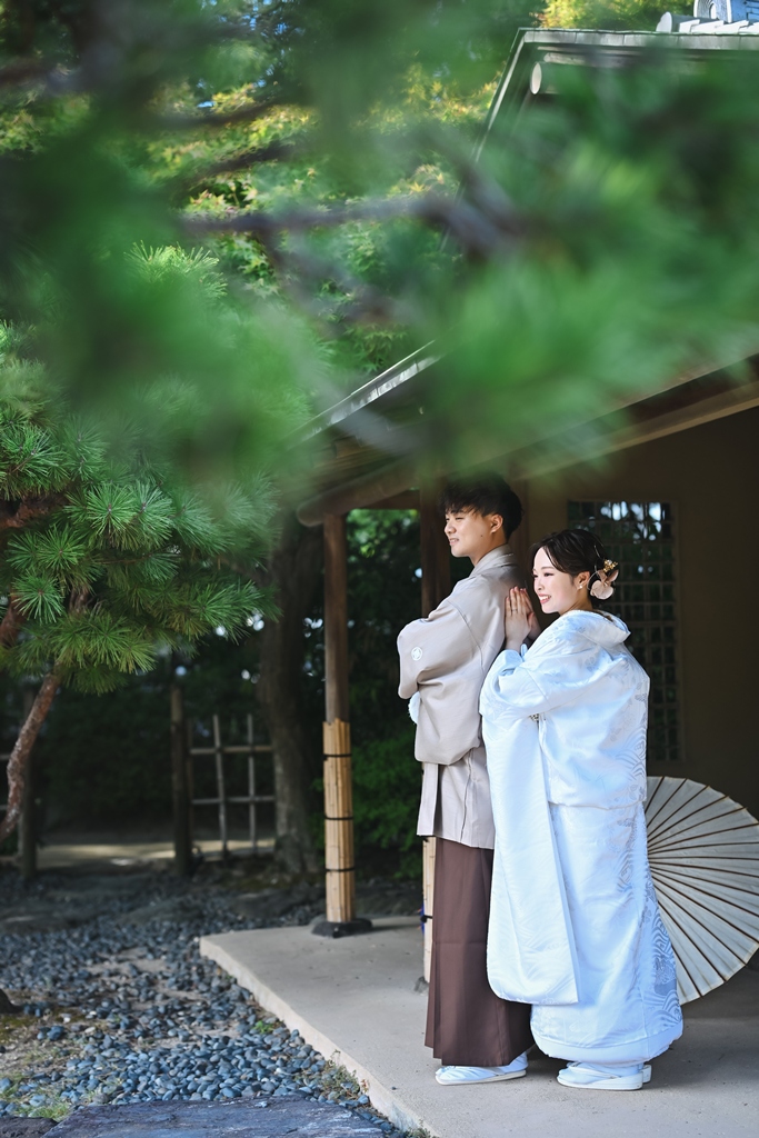 撮影当日、おふたりが和装ならではの気品をまとって歩かれる姿は、まるで日本画の一場面のようでした。