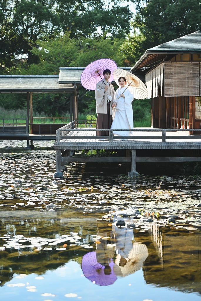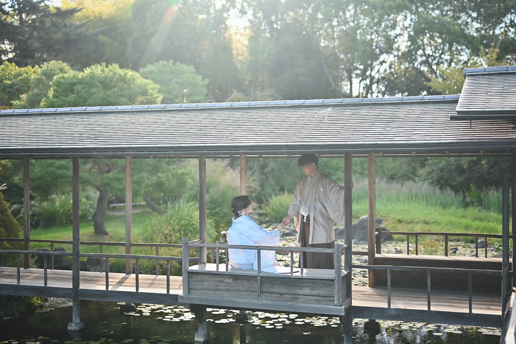 このたびは、白鳥庭園での和装前撮り、誠におめでとうございます。
