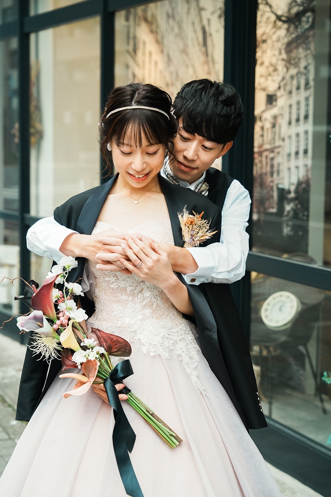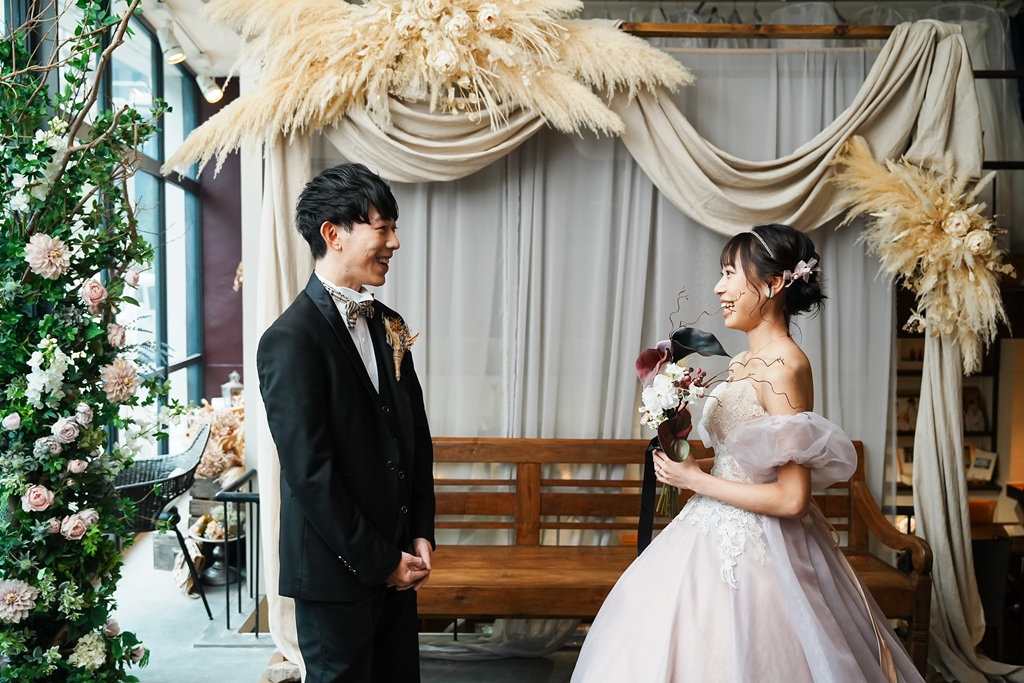 撮影中のおふたりは、少し照れながらも笑い合い、ふとしたアイコンタクトや手をつなぐ瞬間に、大切に積み重ねてこられた時間と想いがあふれていました。
