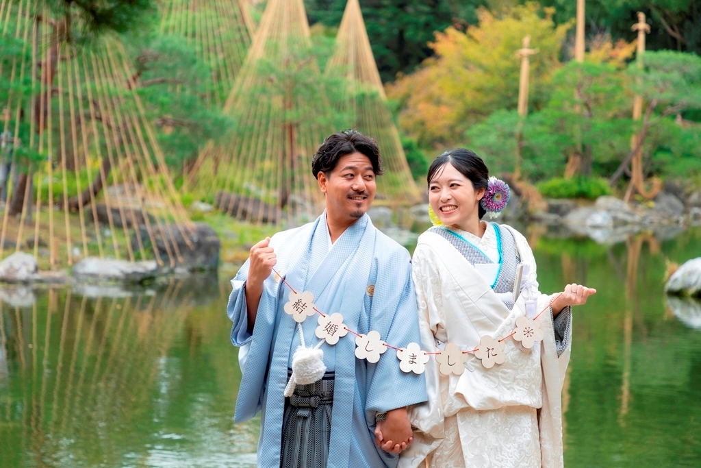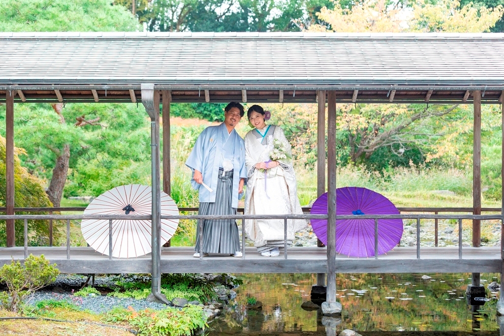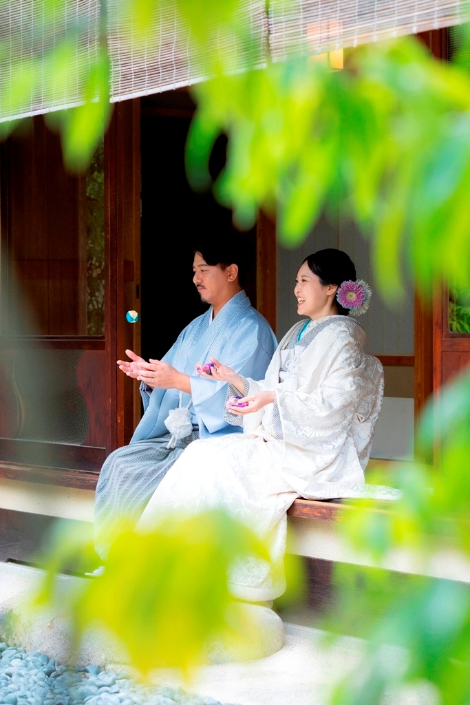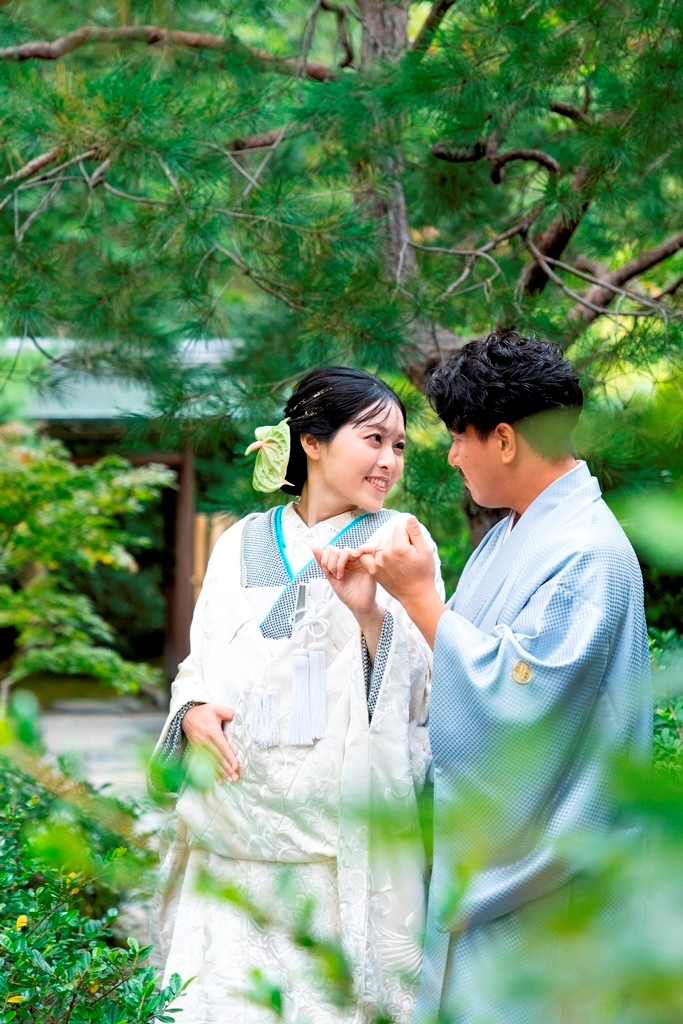 白無垢の撮影にぴったりな静寂と美しさがあり、日本らしい情景の中で一生に一度の思い出を残したいと思い、この場所を選びました。" - FROM