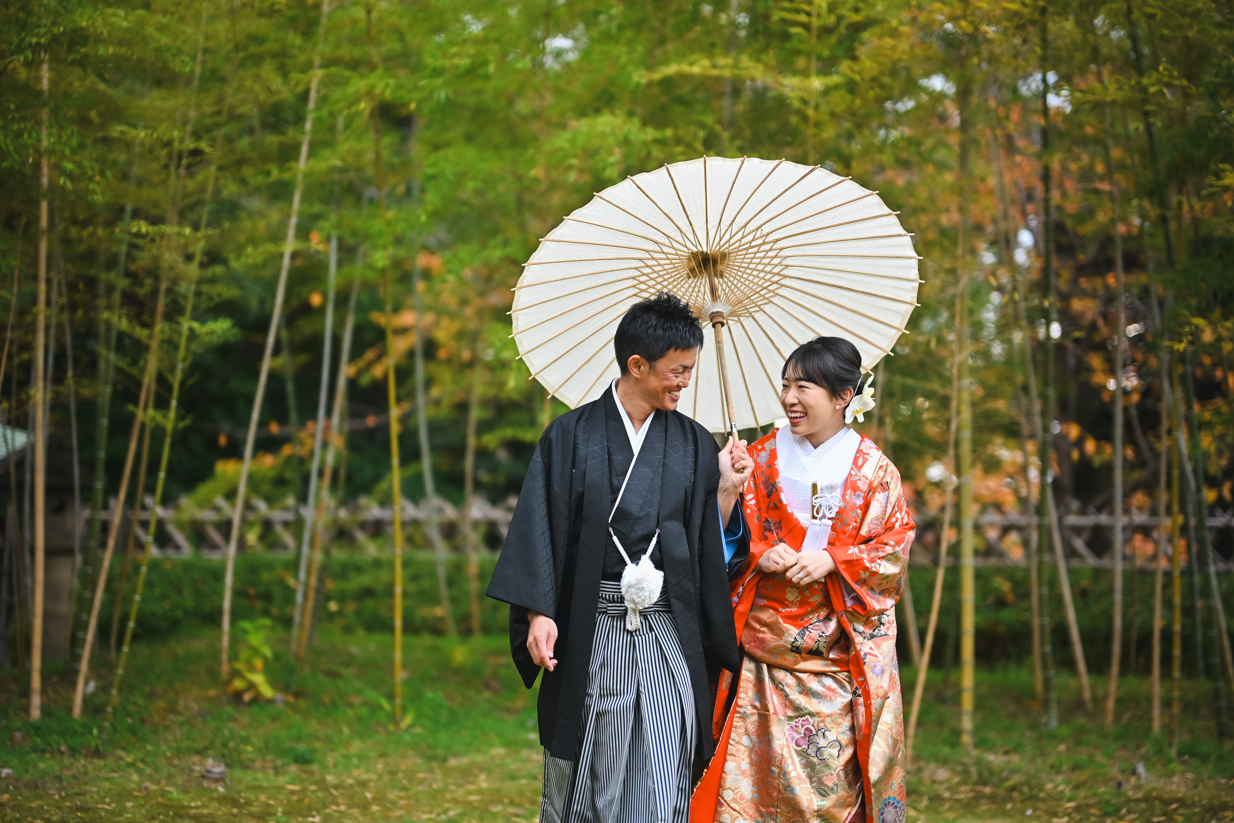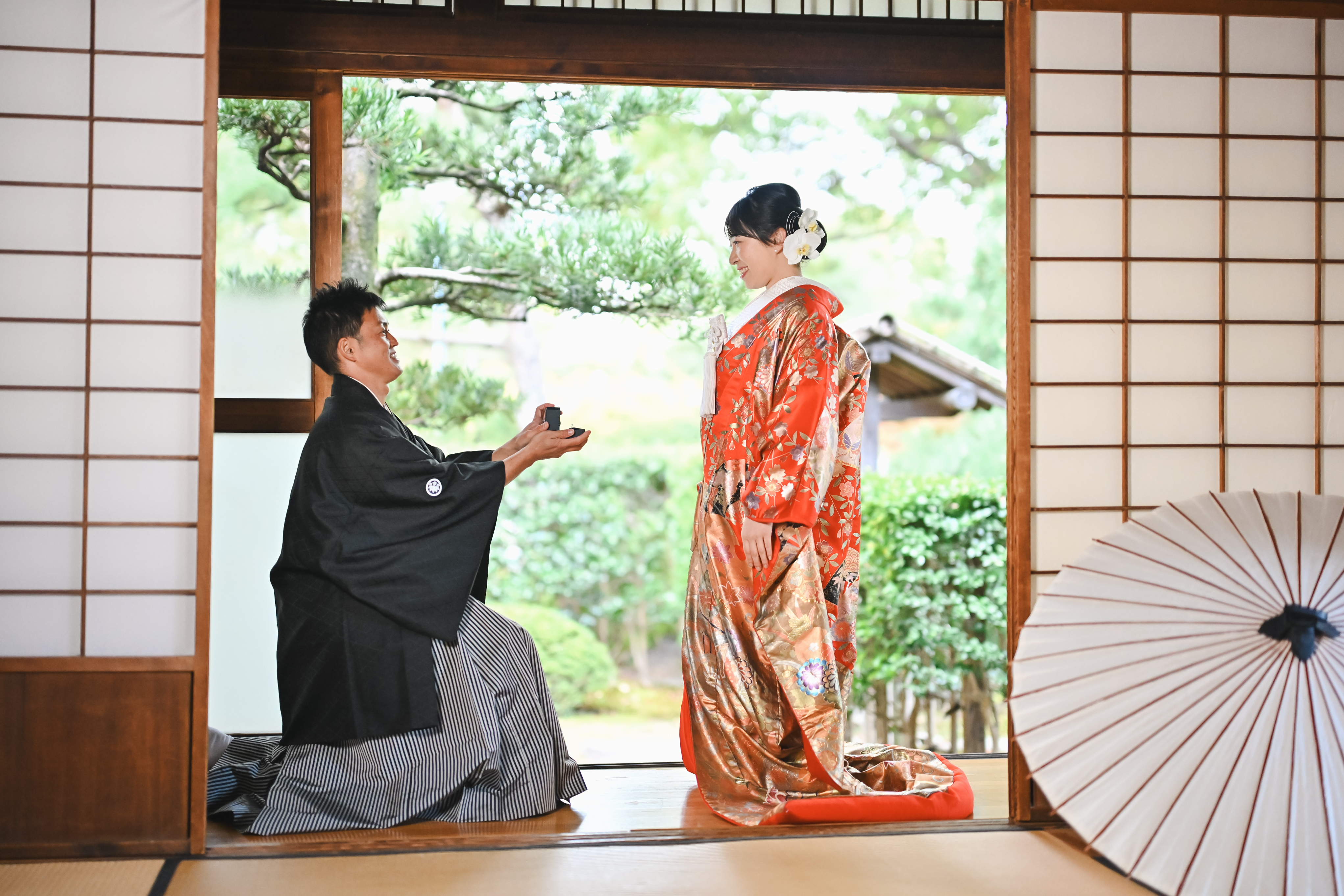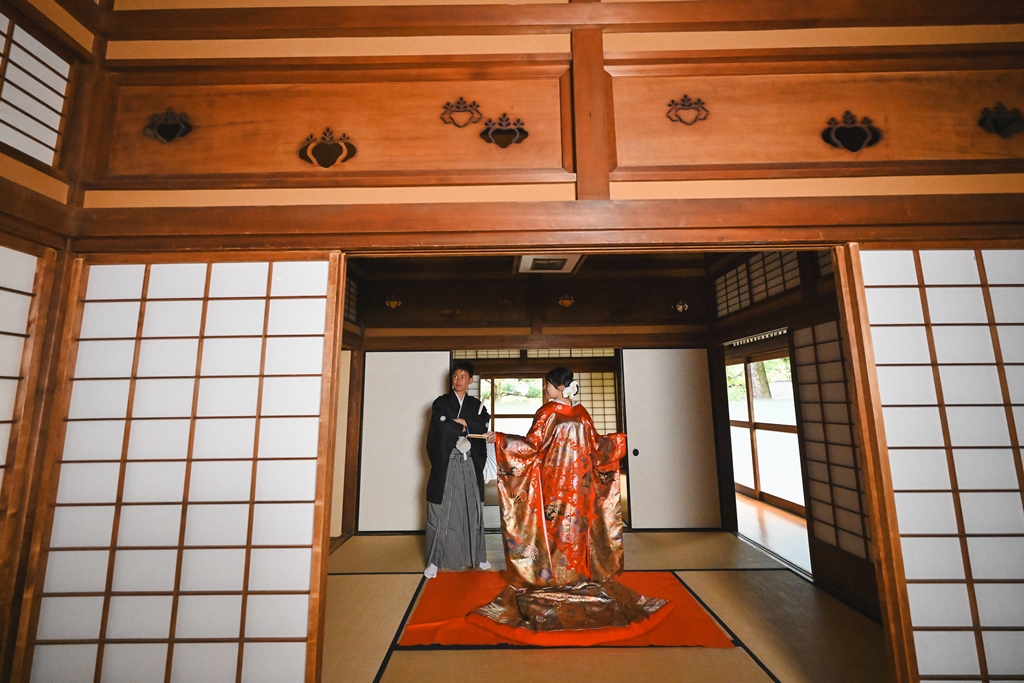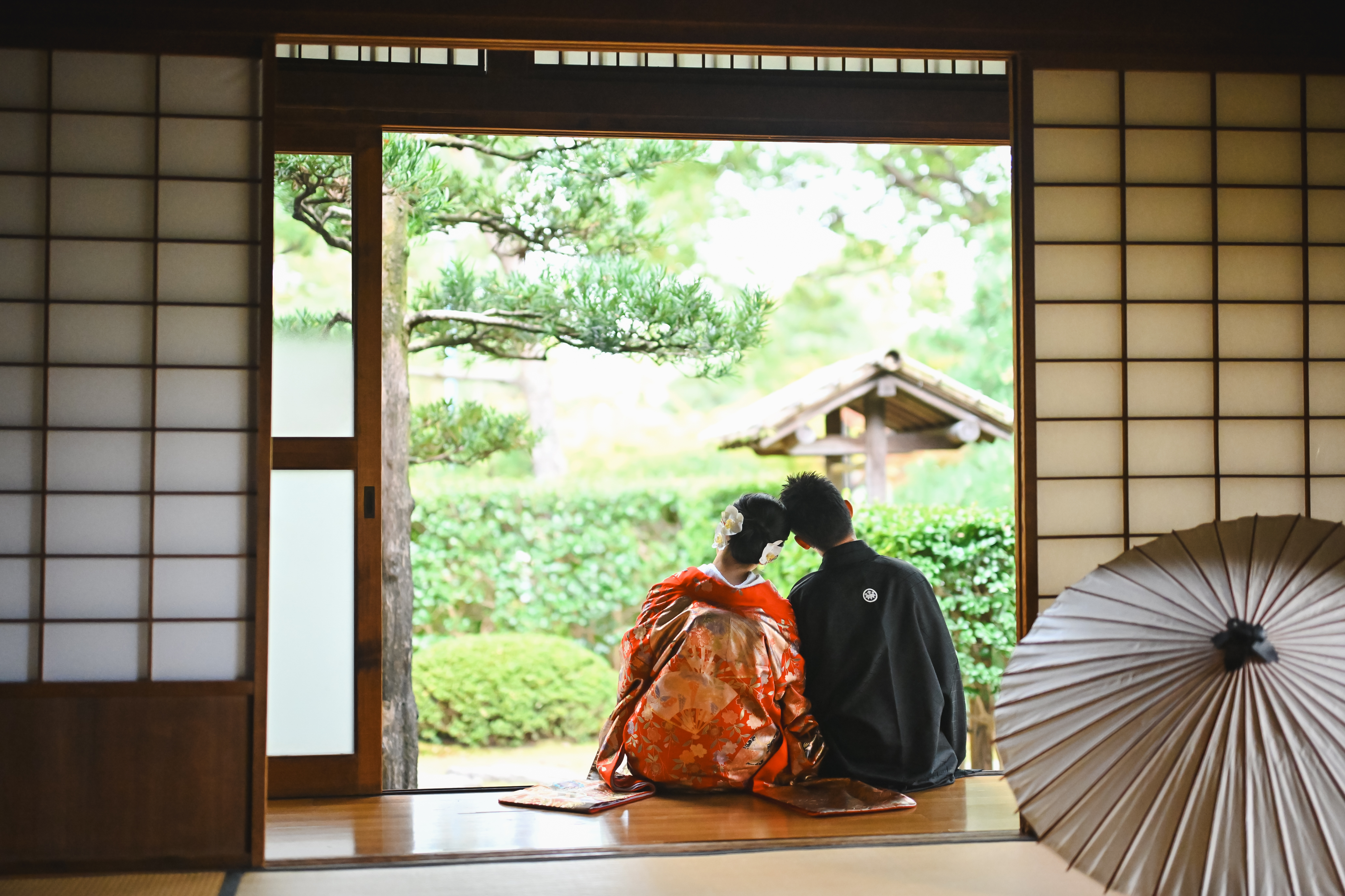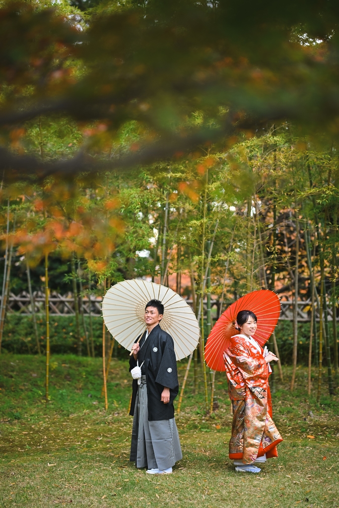 希望する日に空いていたからです。他の場所は埋まっており、ここしか空いていませんでした。また、茶室や庭園だけでなく、竹林の写真がとれるのも良かったポイントです。ちょうど紅葉の季節で、木々が色づいていました。 - FROM
