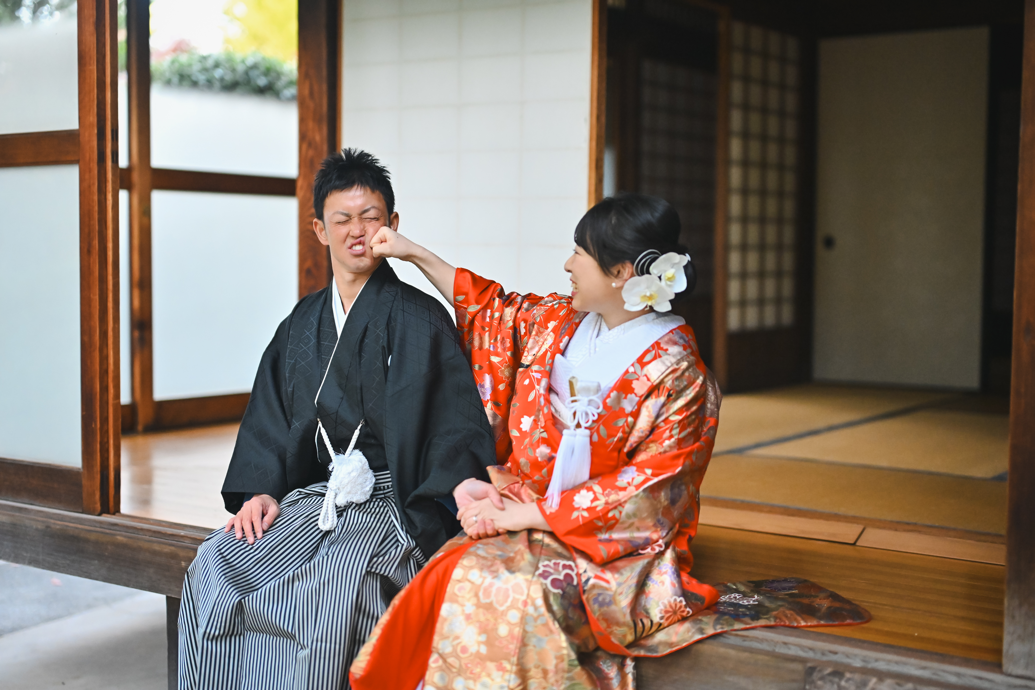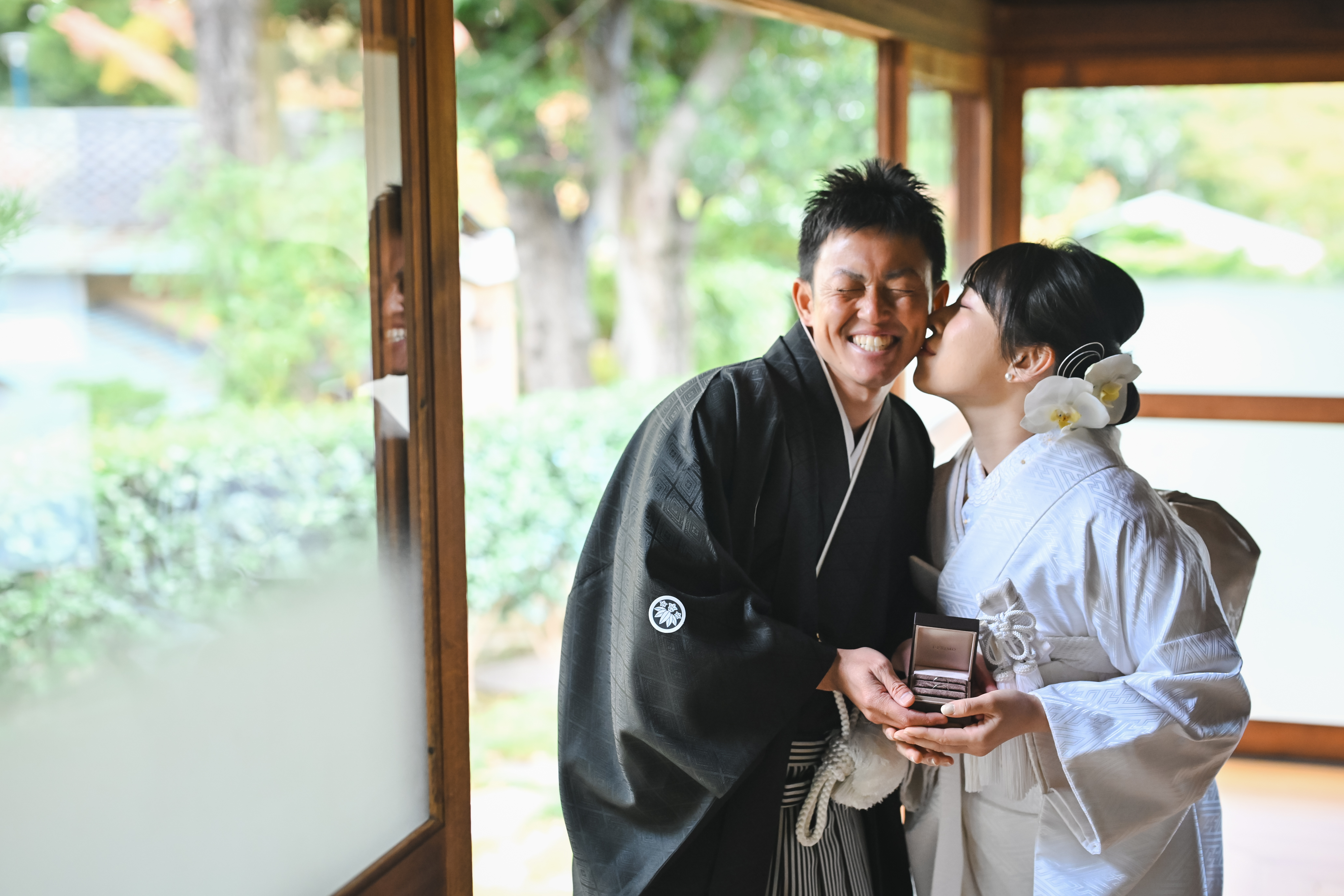 静かに揺れる木々、柔らかい光、趣のある建造物が調和し、おふたりの特別な一日を素敵な日と変えてくれました!!撮影中のお二人の笑顔や寄り添う姿からは、お互いを大切に想うお気持ちが強く伝わってまいりました。仲の良さがたくさん見られる、撮影となりましたね♪