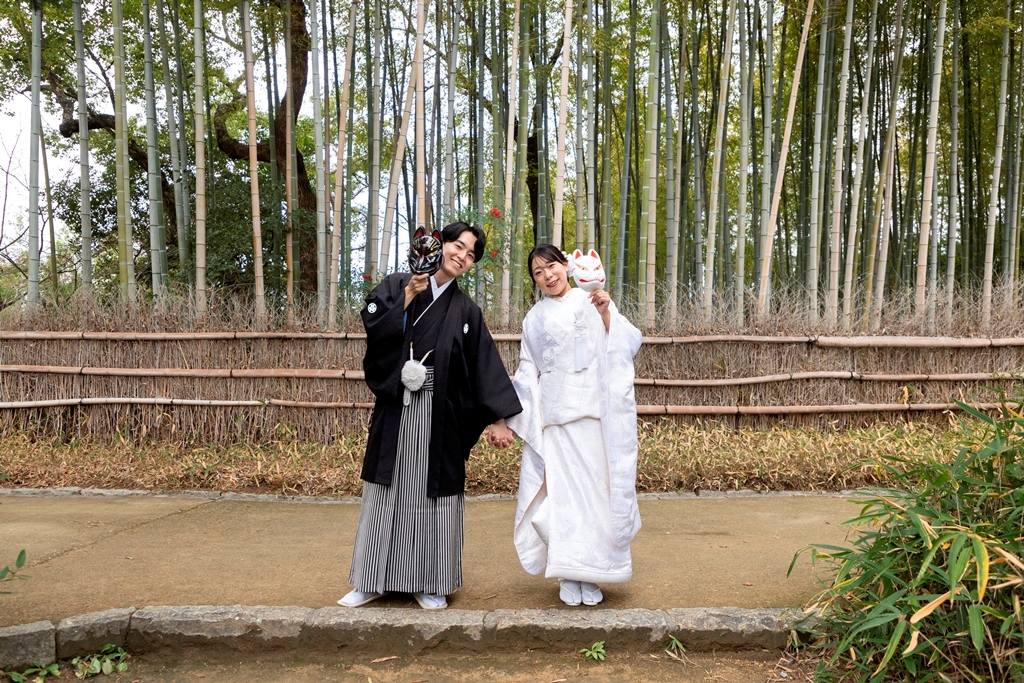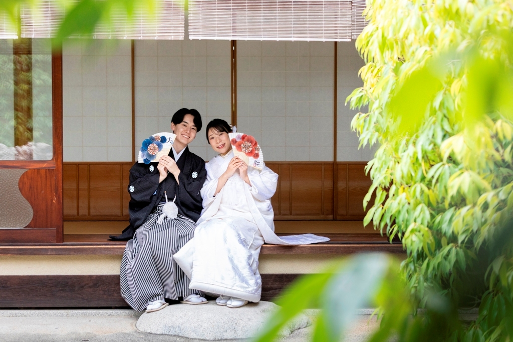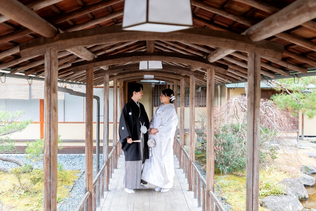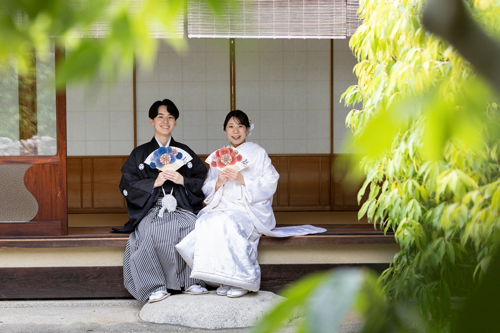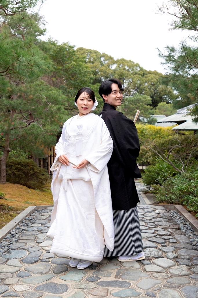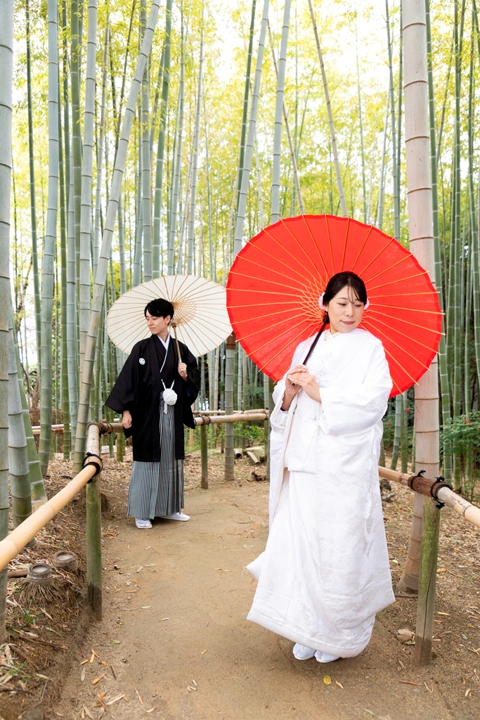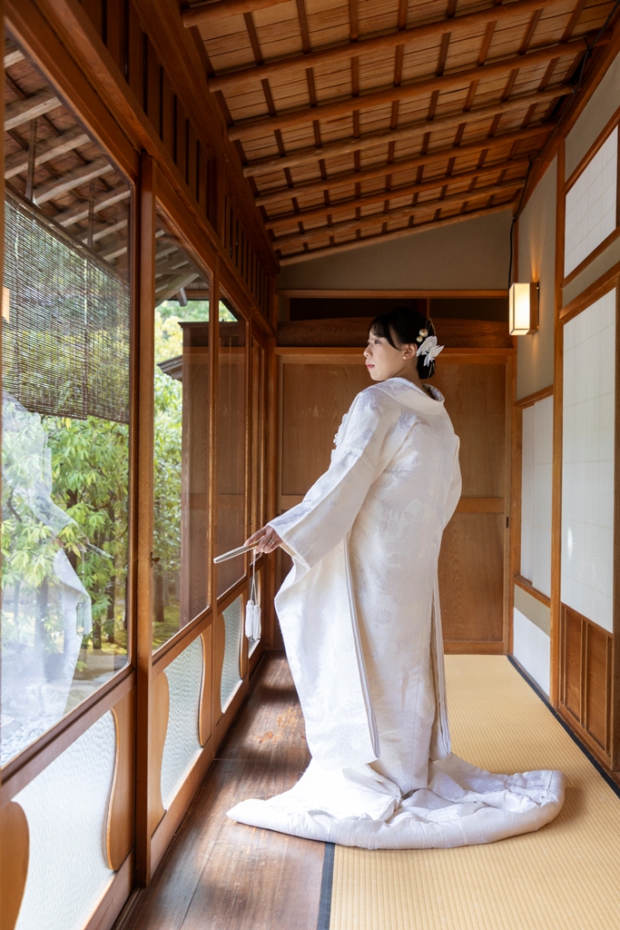 前撮りでは和装を検討していたため、庭園や茶室で撮影したいと考えました。京都か名古屋でのロケーション撮影を希望する中で、インスタグラムの雰囲気が一番良かった白鳥庭園でお願いすることにしました。初めて行きましたが、風情があり、和装にぴったりな場所でした!