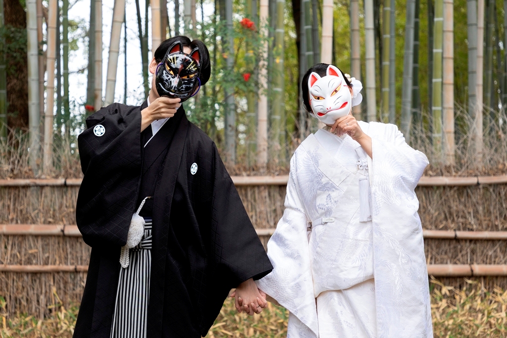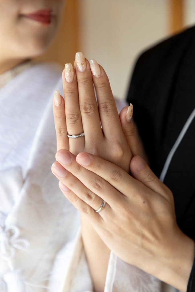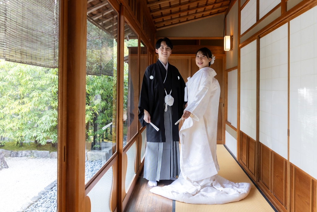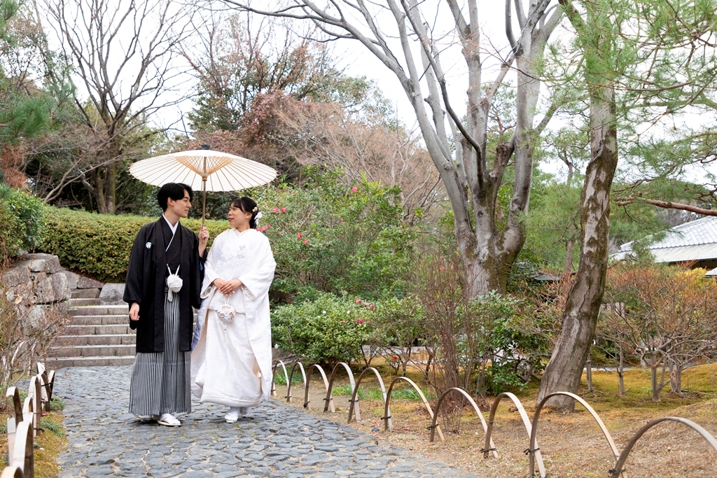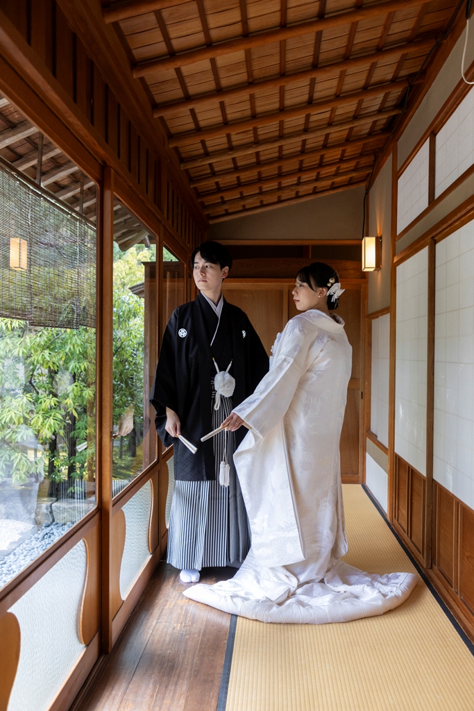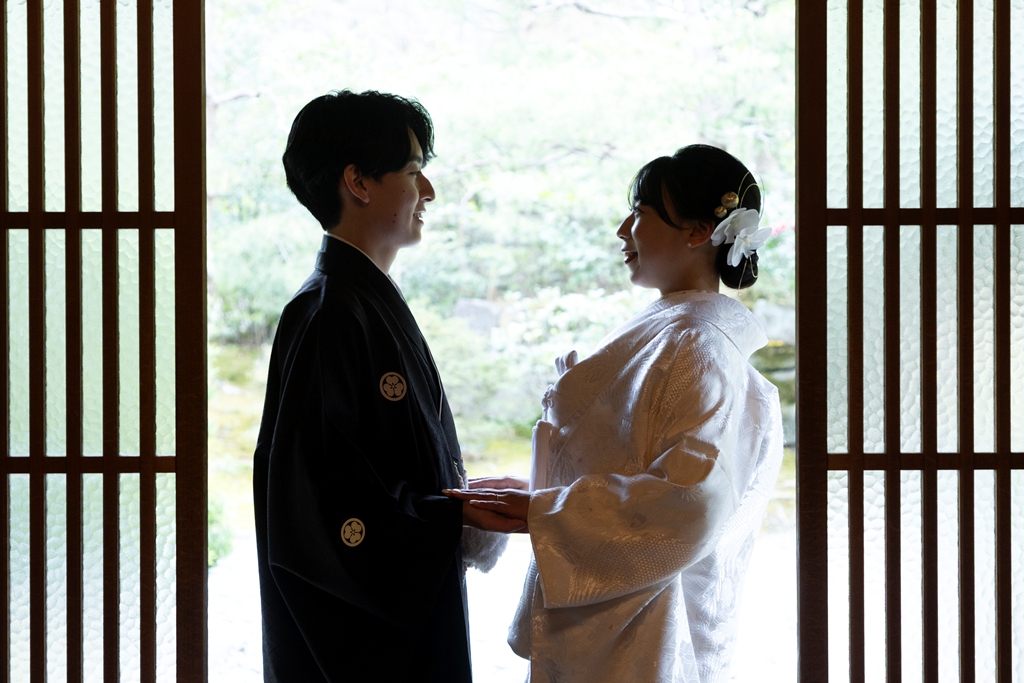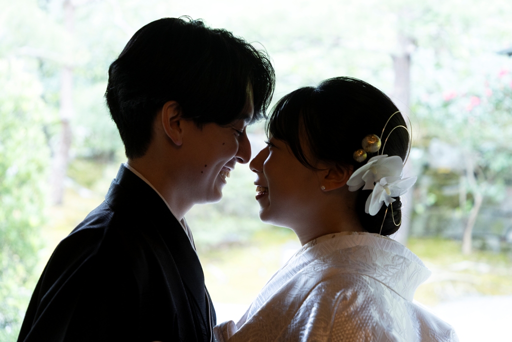 前撮りでは和装を検討していたため、庭園や茶室で撮影したいと考えました。京都か名古屋でのロケーション撮影を希望する中で、インスタグラムの雰囲気が一番良かった白鳥庭園でお願いすることにしました。初めて行きましたが、風情があり、和装にぴったりな場所でした!