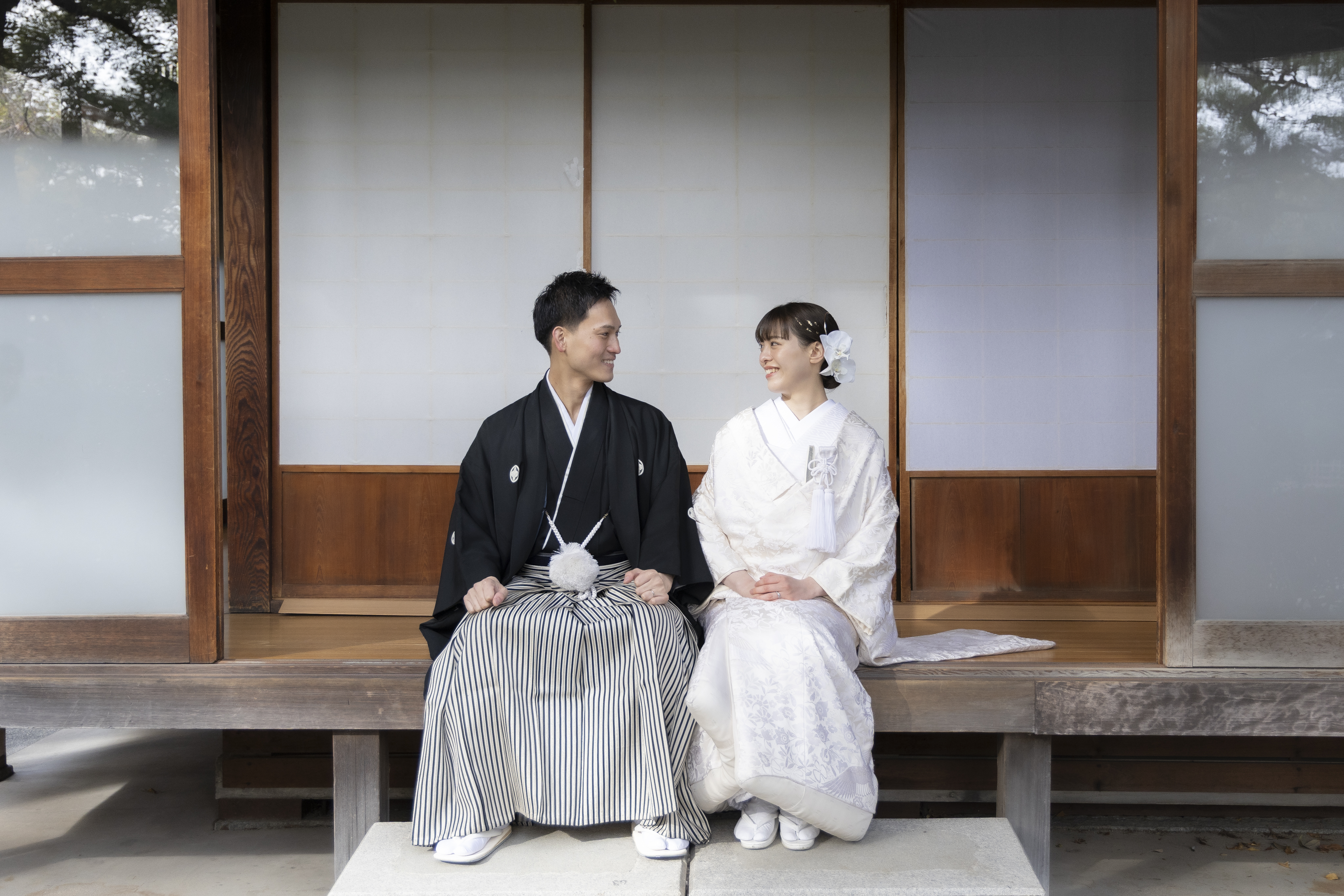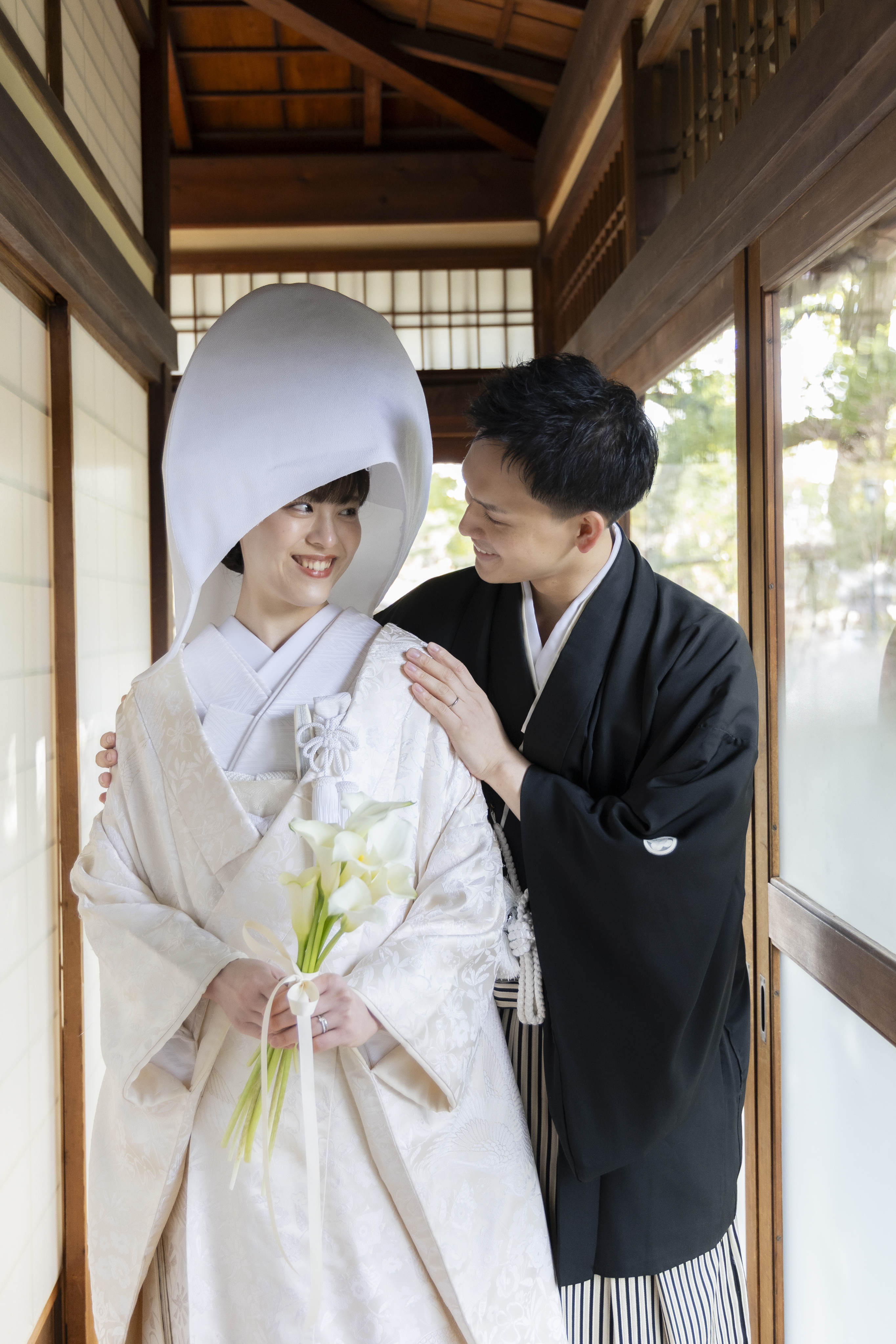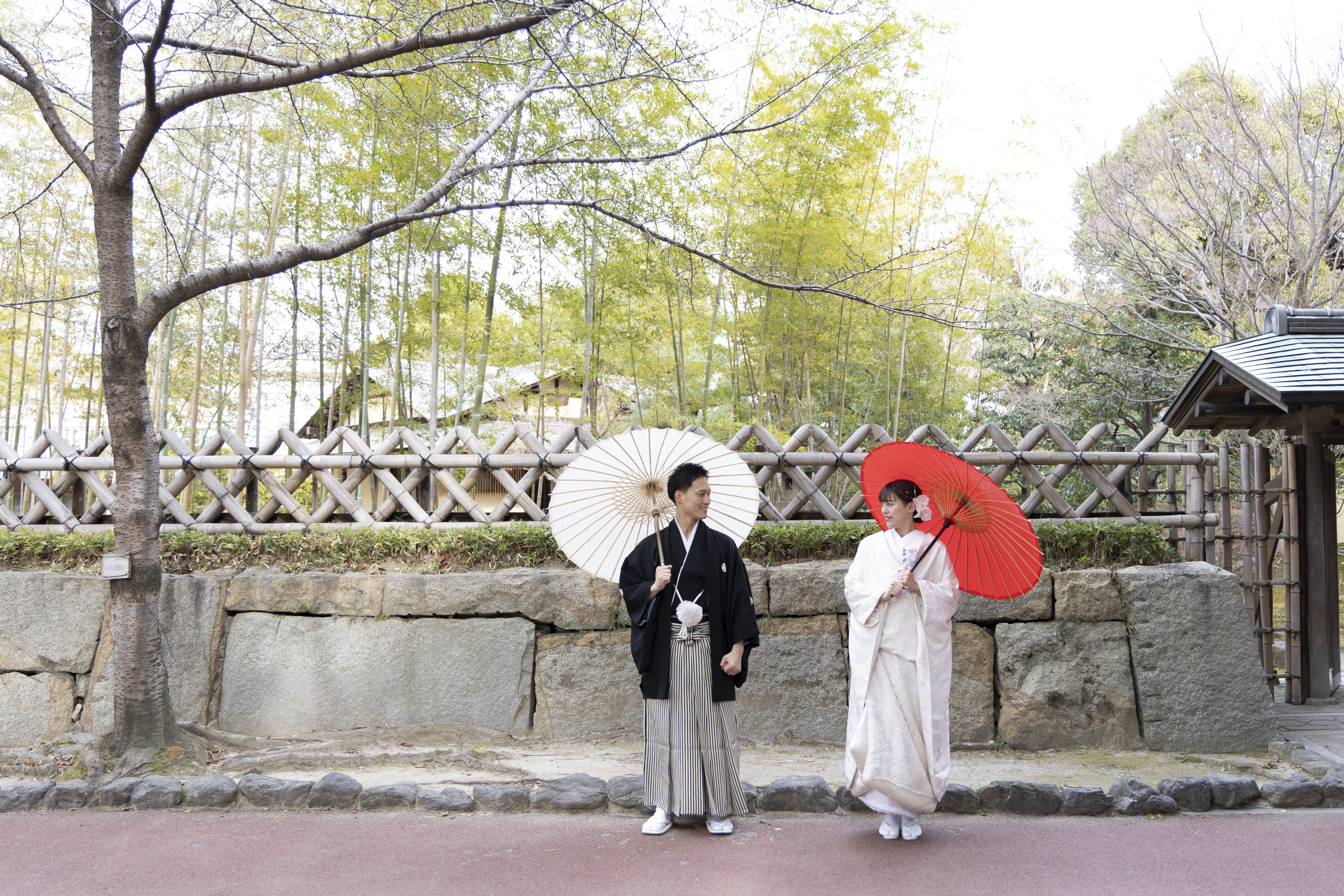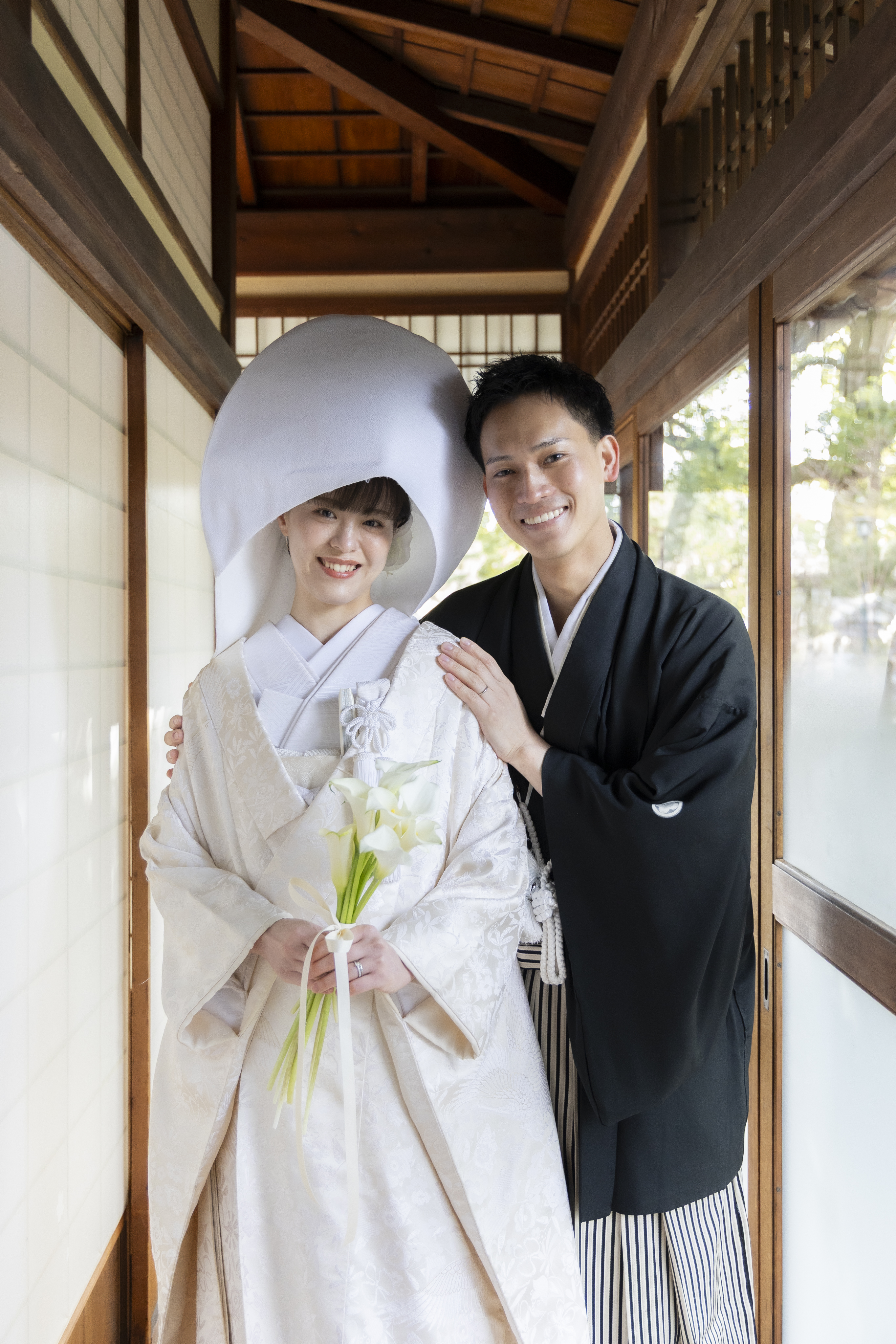 和装にとてもよく合うロケーションだと感じたため、この撮影場所を選びました。自然や建物の雰囲気が落ち着いていて、日本らしさを感じられる点が魅力的でした。和装の良さをより引き立ててくれる場所だと思い、特別な一日を残すのに最適だと感じました。