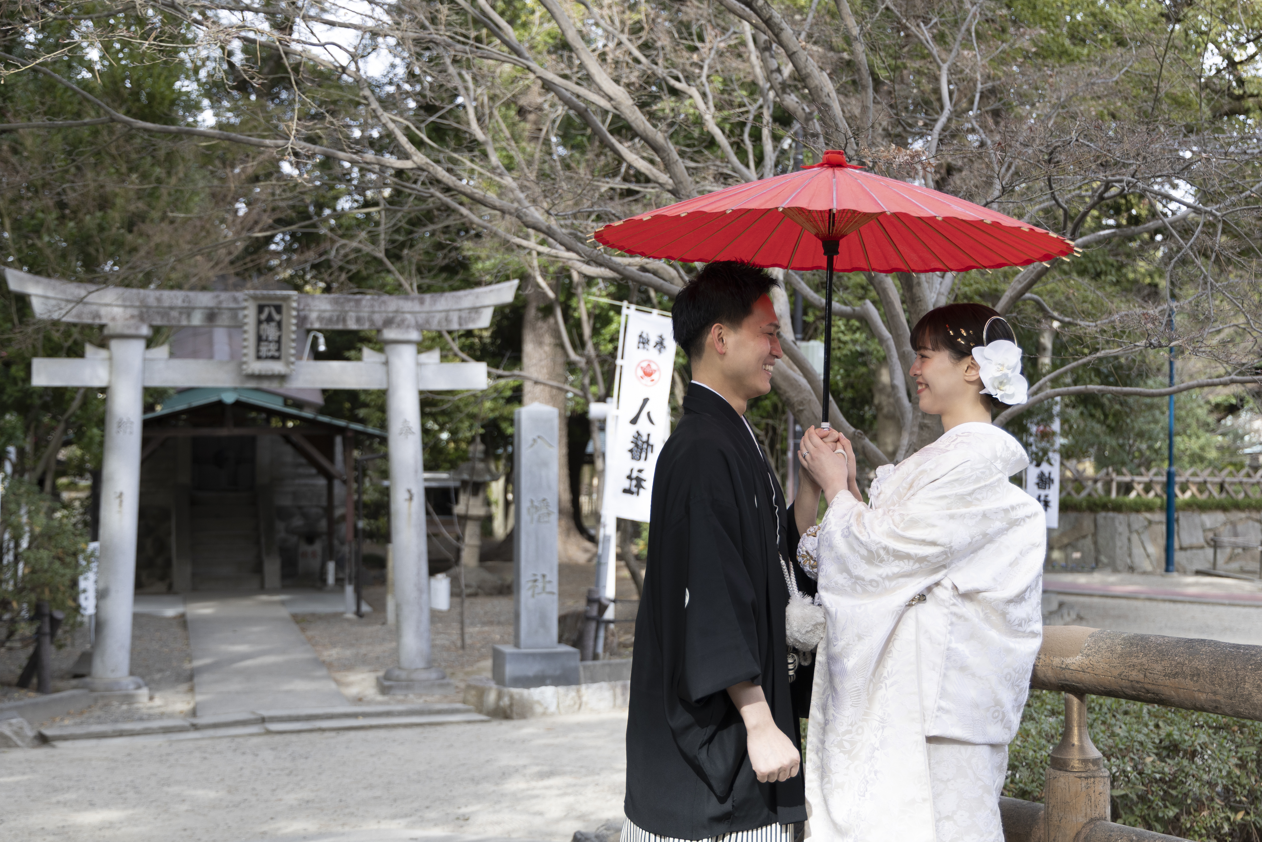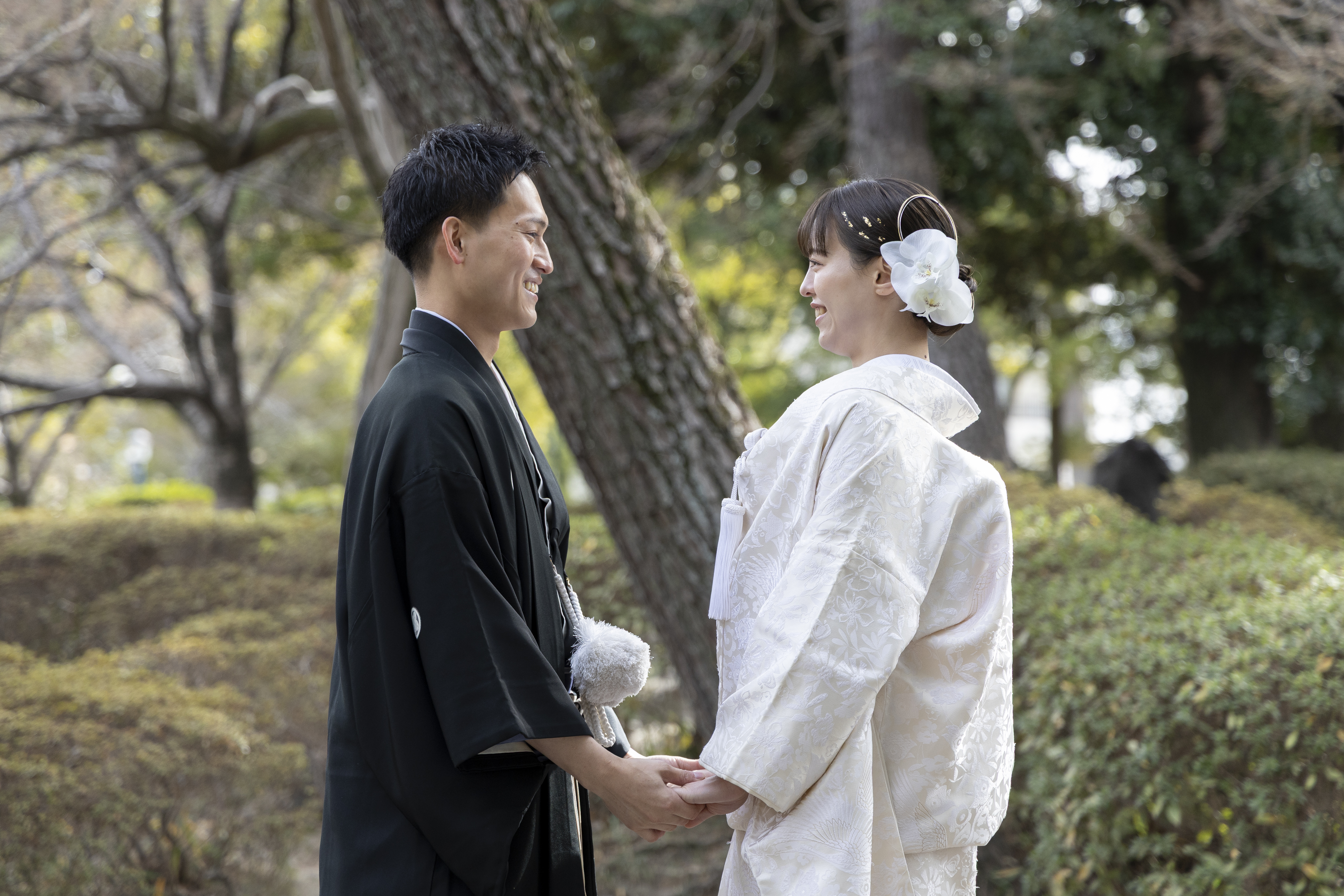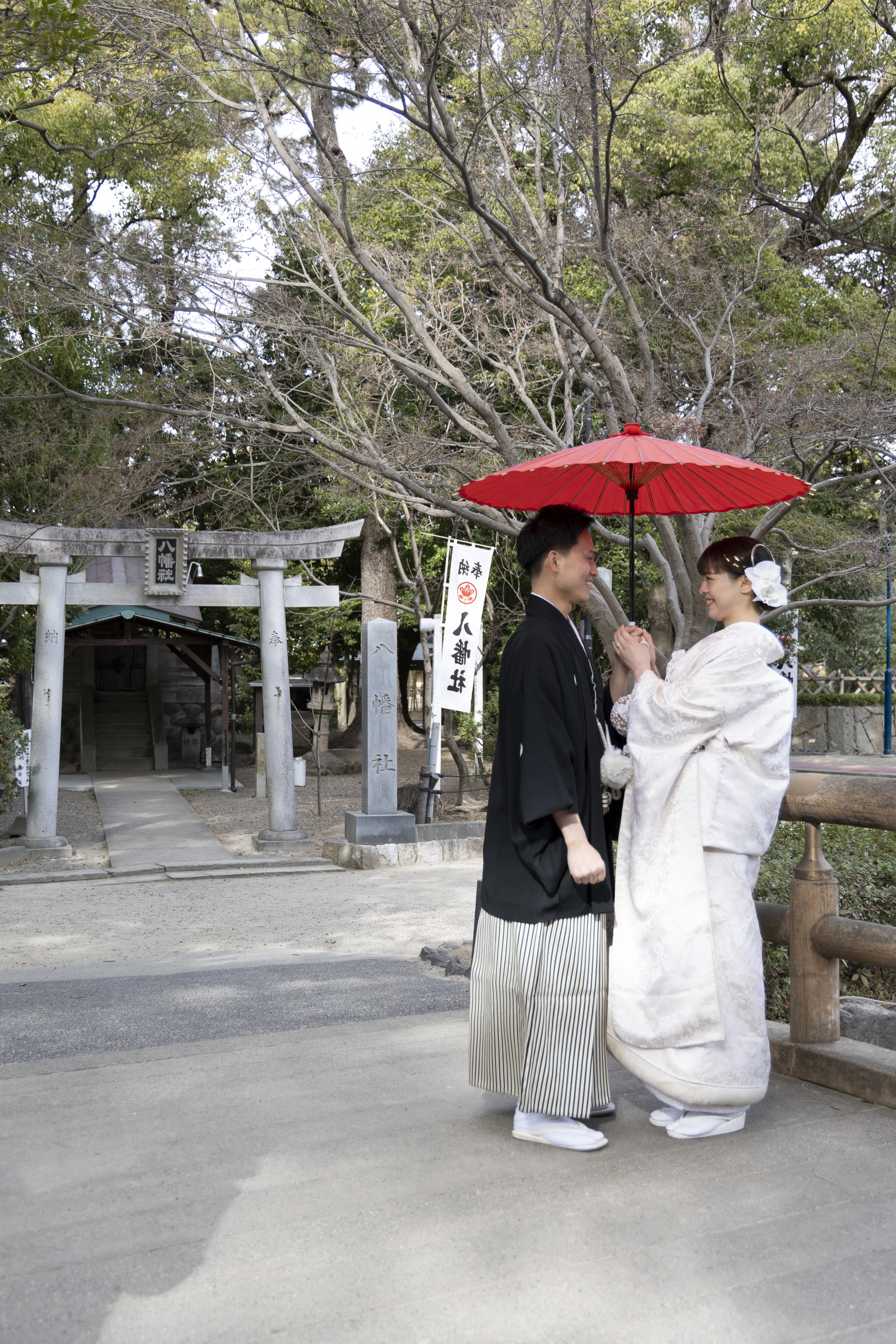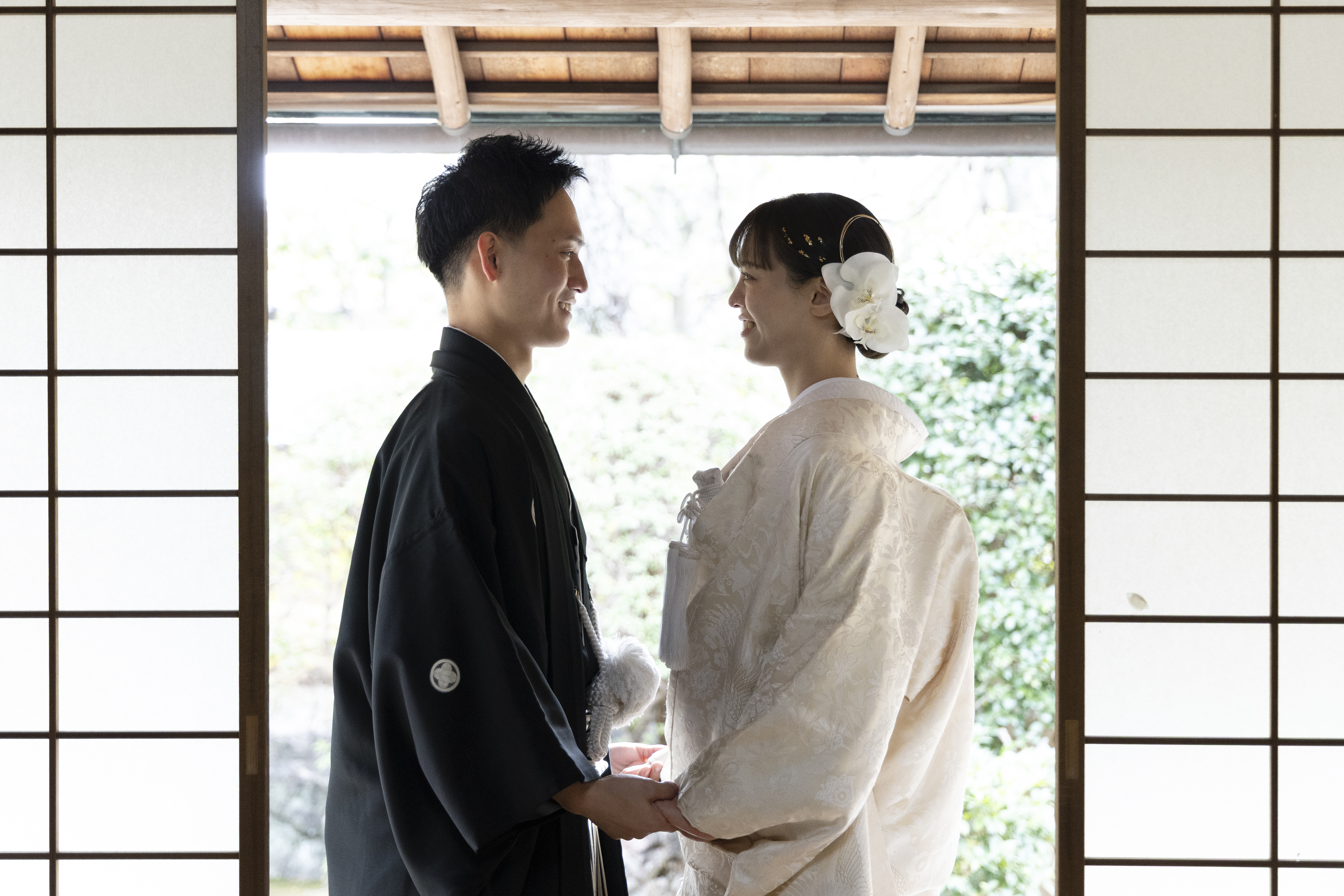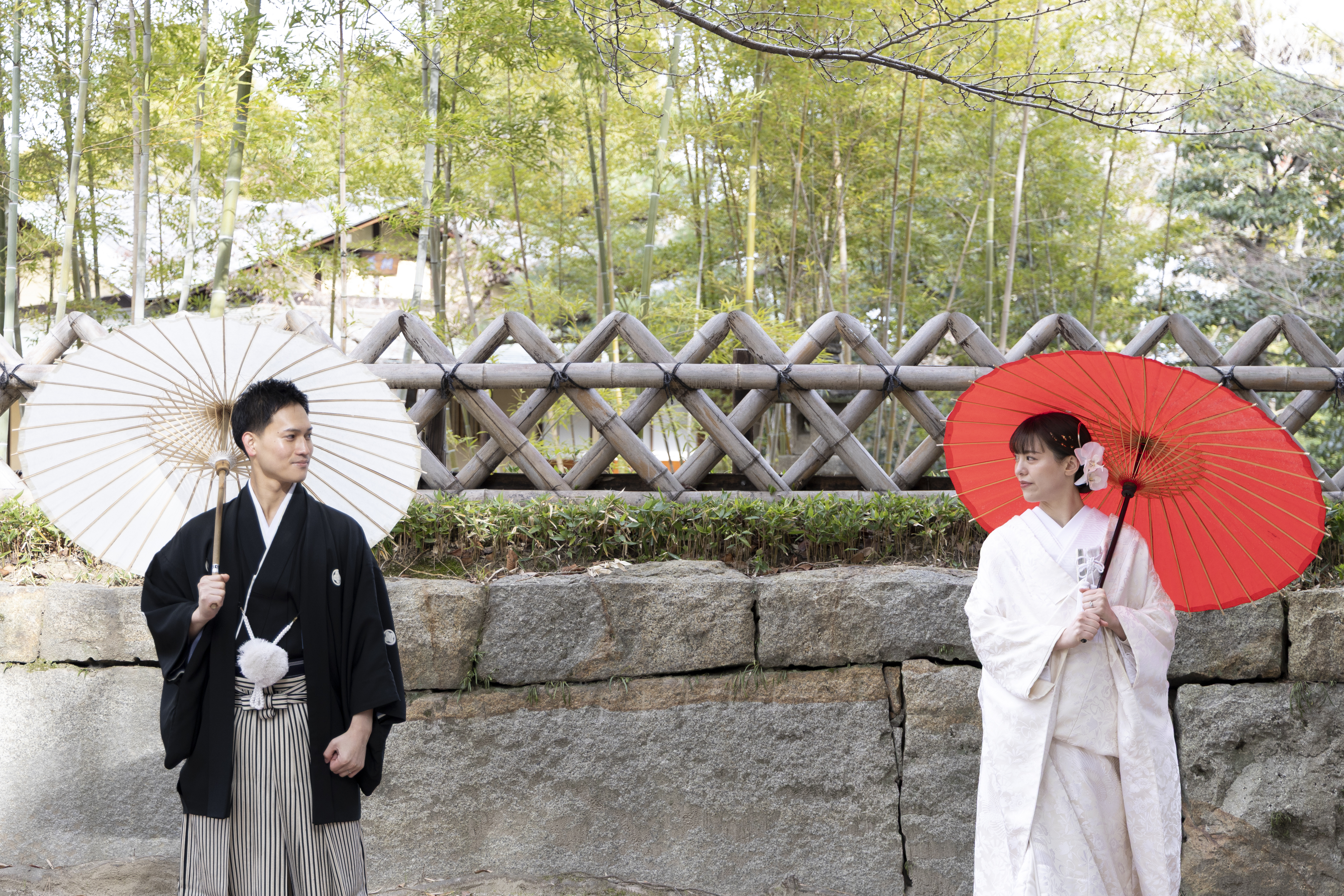 和装にとてもよく合うロケーションだと感じたため、この撮影場所を選びました。自然や建物の雰囲気が落ち着いていて、日本らしさを感じられる点が魅力的でした。和装の良さをより引き立ててくれる場所だと思い、特別な一日を残すのに最適だと感じました。