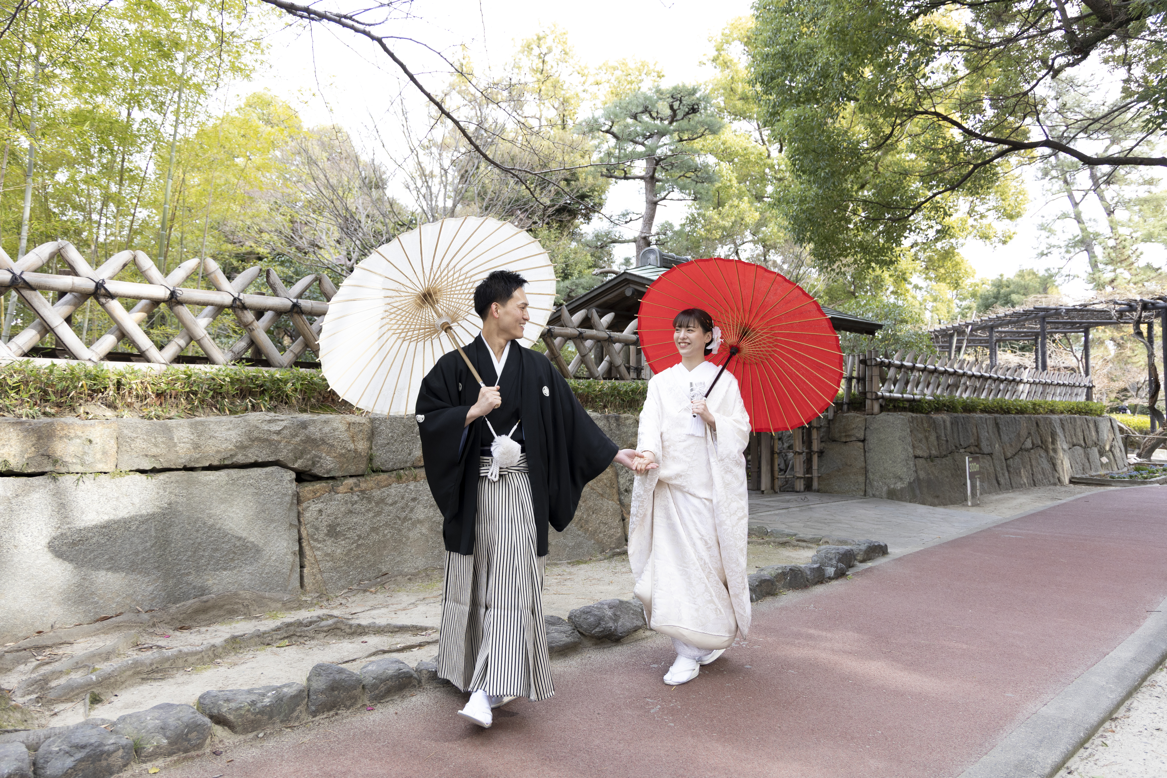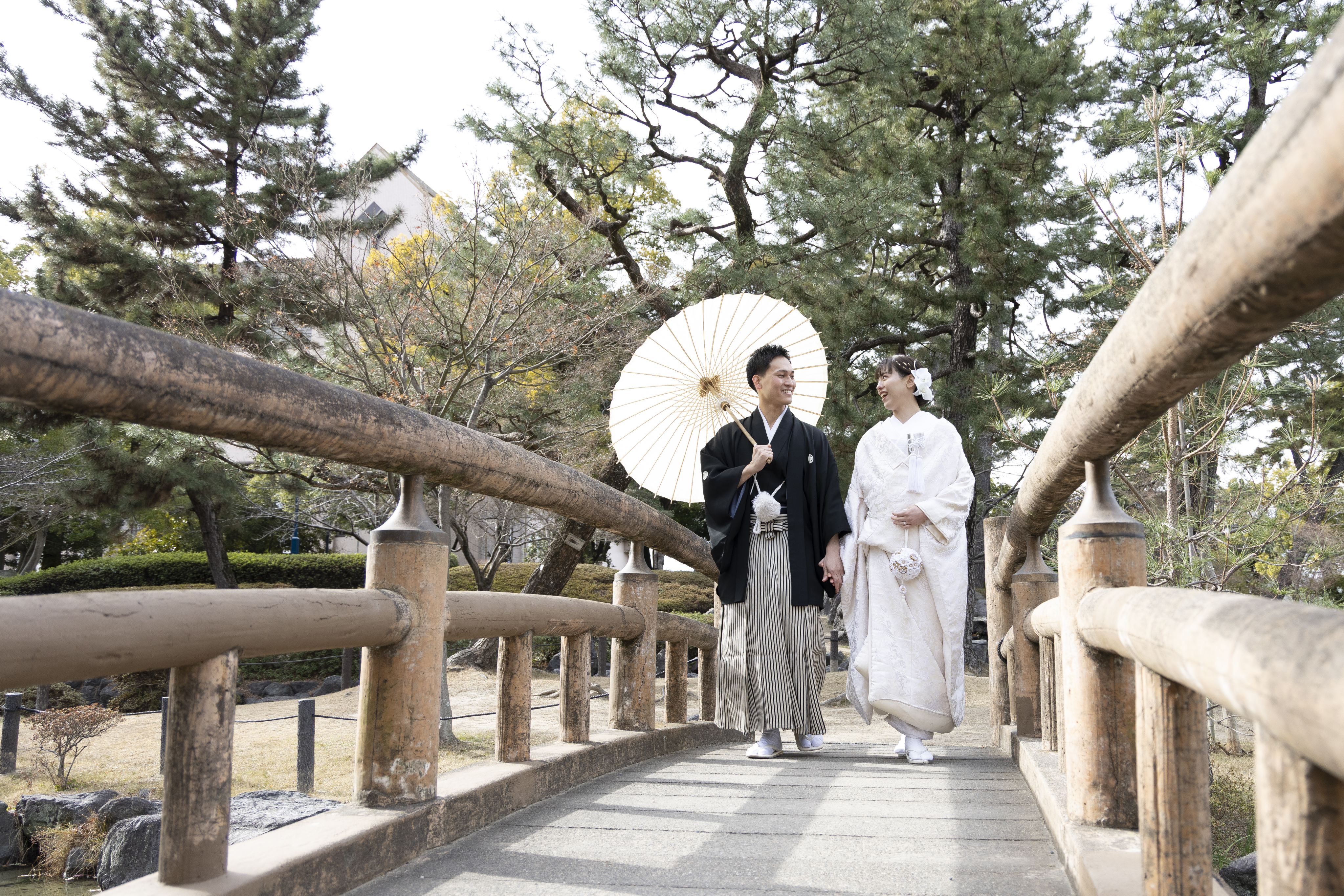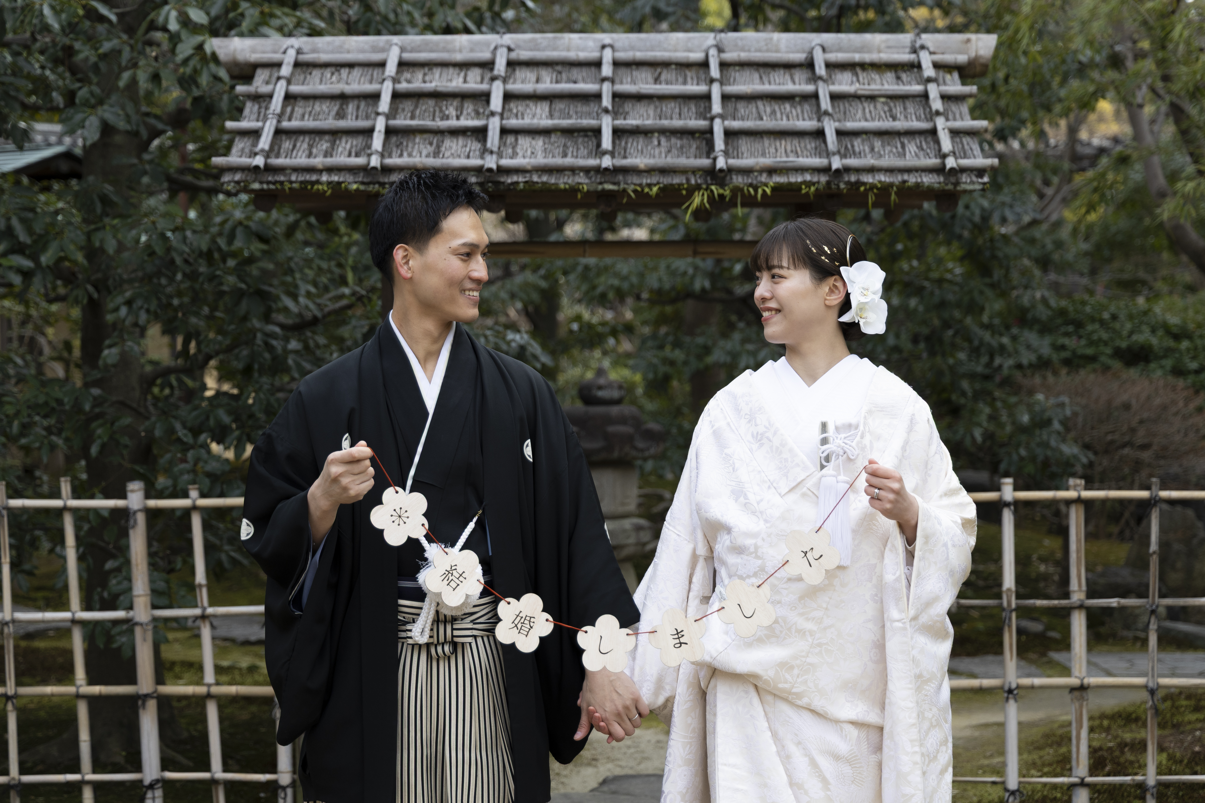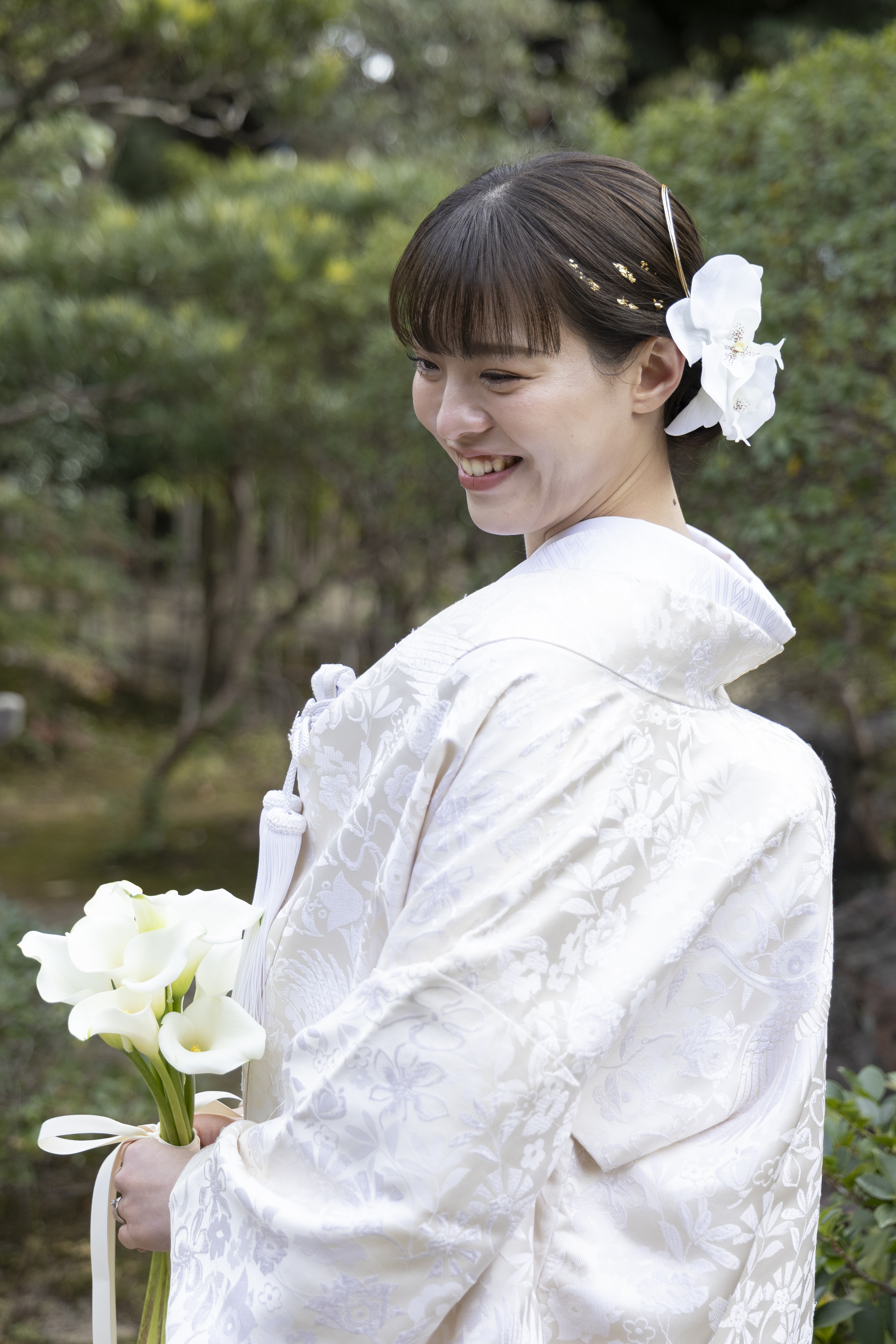 和装にとてもよく合うロケーションだと感じたため、この撮影場所を選びました。自然や建物の雰囲気が落ち着いていて、日本らしさを感じられる点が魅力的でした。和装の良さをより引き立ててくれる場所だと思い、特別な一日を残すのに最適だと感じました。